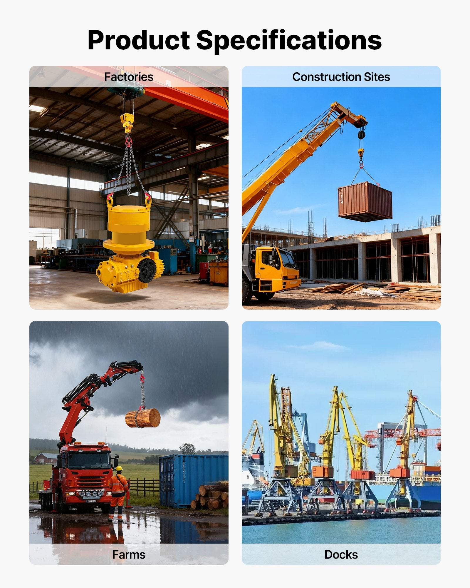 - Justerbar kedjelängd: Vår lyftkedja är utformad med två justerbara krokar, vilket gör att du enkelt kan ändra lyftlängden för att passa olika laststorlekar och lyftvinklar. Obs: Se till att lasten är centrerad på kroken. Häng inte föremål från krokens kant. Vrid, vänd eller trassla inte in lyftkedjan.
