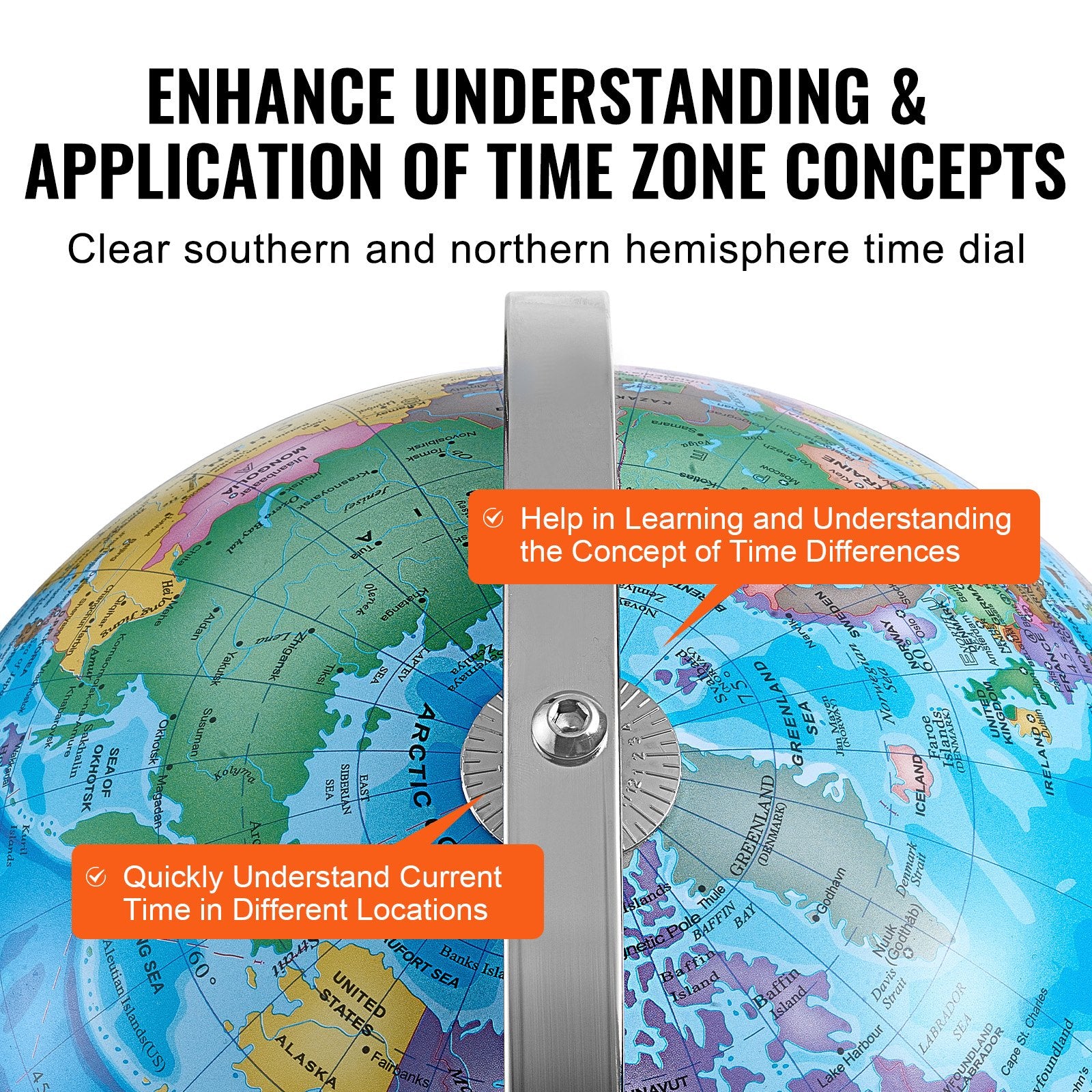 Roterande världsglob med stativ, 13 tum/330,2 mm, pedagogisk geografisk jordglob med exakt tidszon ABS-material, 720° roterande jordglob för barn som lär sig geografi i klassrummet (kartspråk: engelska)