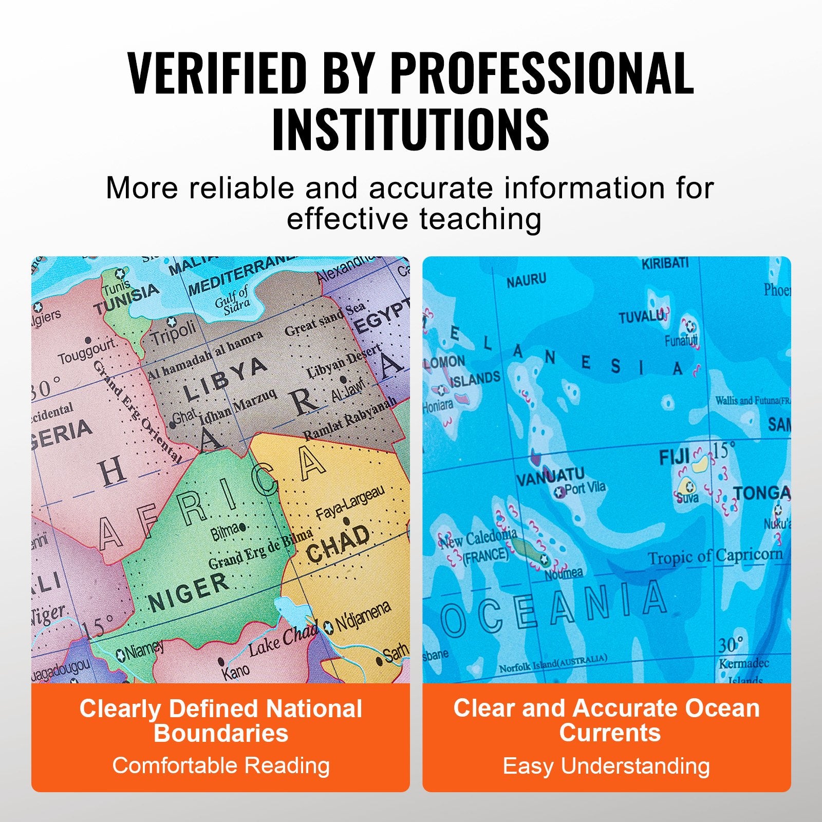 - Tydliga politiska gränser och nationsgränser: Vår 13-tums/330,2 mm stora jordglob ger en högupplöst visning av världens karta och gränser, vilket gör den lätt att se och förstå. Den presenterar visuellt världens länder, huvudstäder, havsströmmar, sjöar samt latitud- och longitudlinjer, vilket uppfyller alla dina behov av geografiinlärning. Upplev omfattande och engagerande lärande för elever i alla åldrar!