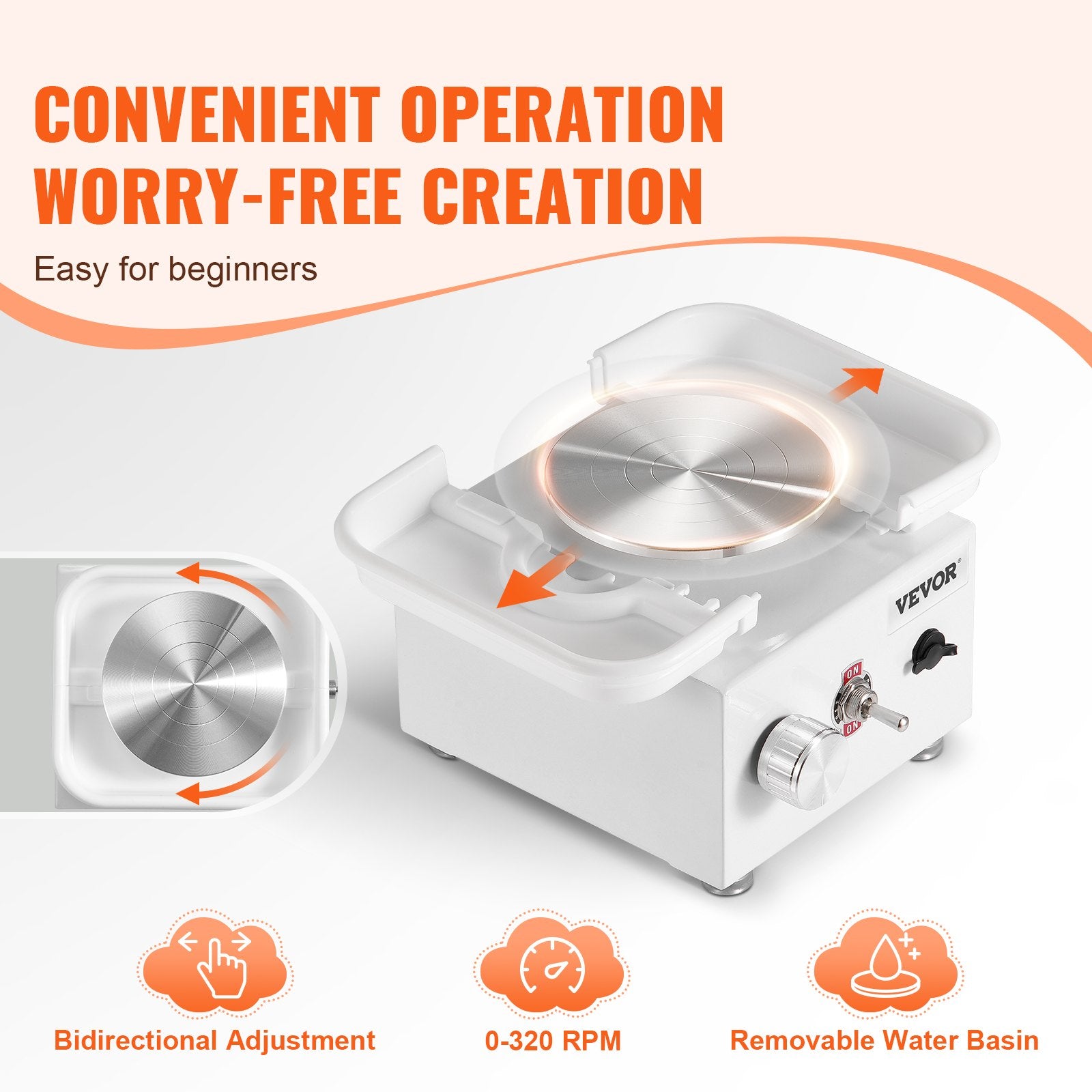 - Bekväm användning: Drejmaskinen har dubbelriktad justering och hastighetsreglering från 0 till 320 varv/min, vilket gör den enkel att använda även för nybörjare. Med en ljudnivå på ≤55 dB ger den en tyst och bekväm kreativ miljö som låter dig släppa lös din kreativitet fullt ut.