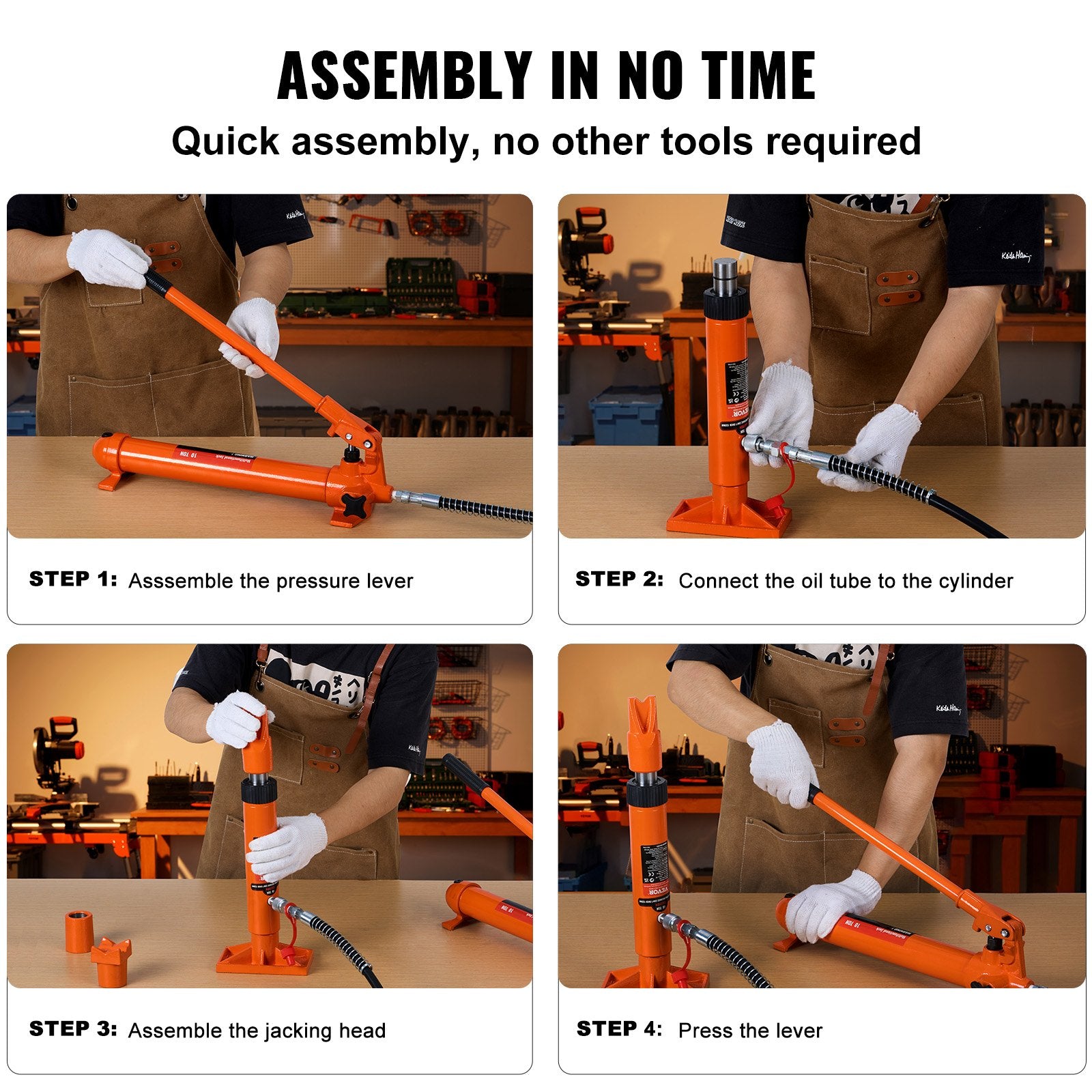 10 tons portakraftssats, bärbar hydraulisk domkraft med 1,4 m oljeslang, reparationssats för bilram med förvaringsväska för bilreparationer, lastbilar, lantbruk