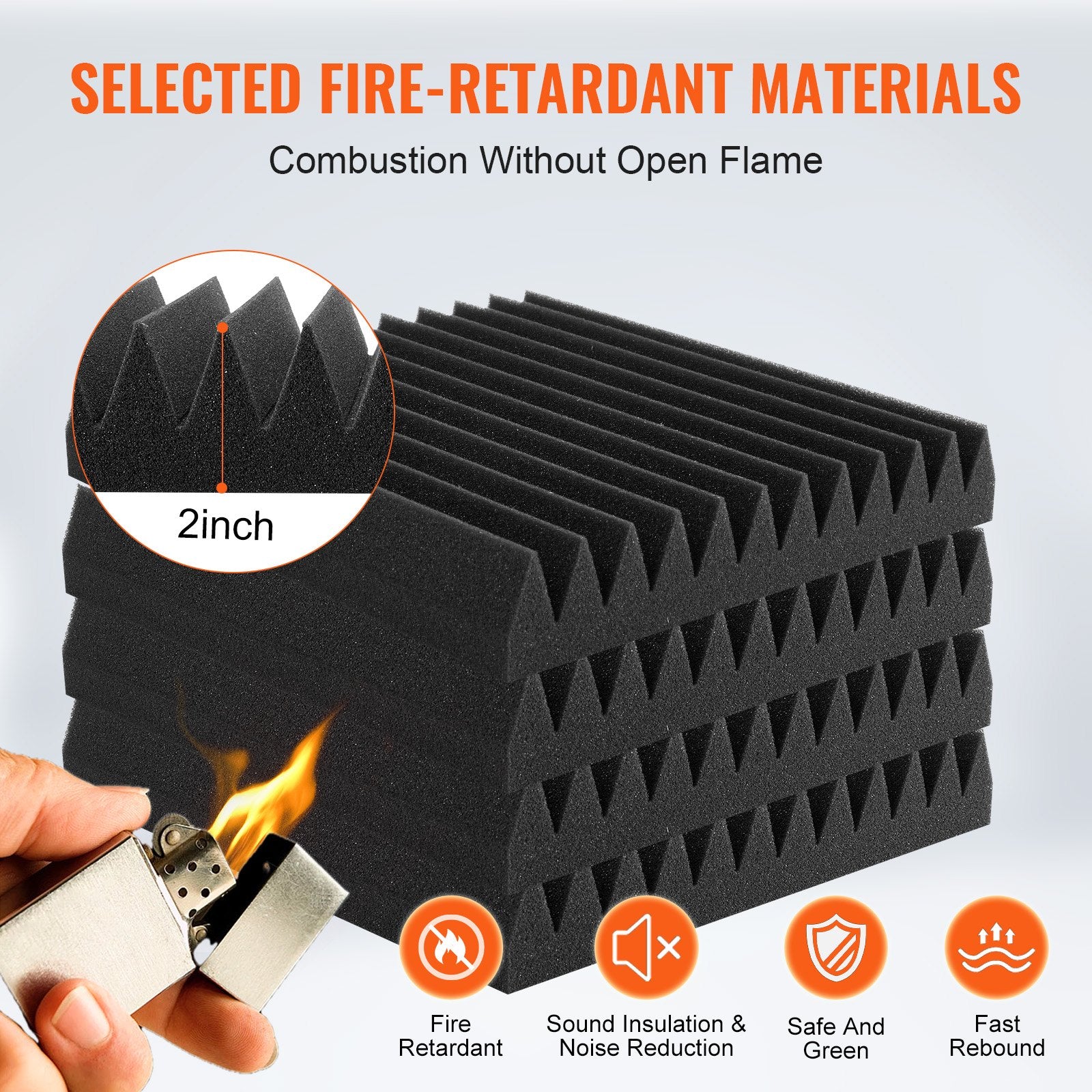 Akustiska skumpaneler, 50-pack 12 x 12 x 2 tum, ljudisolerade väggpaneler med hög densitet, brandsäkra akustiska paneler, ljuddämpande paneler för studioväggar och tak, svart