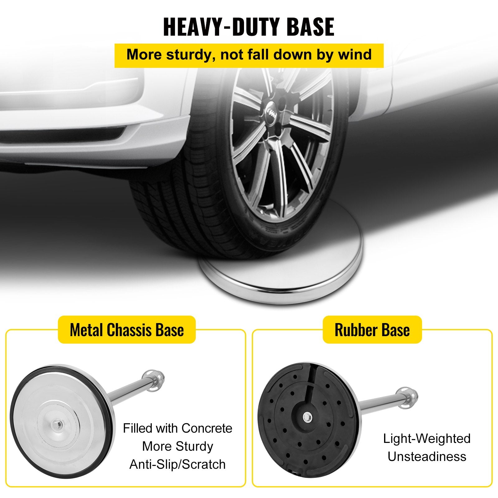 - Robust bas: Denna 30 cm stabila bas är fylld med kraftig betong, som är tillräckligt stark för att stå emot stark vind och svår att trycka ner av folkmassor. Dessutom är metallchassit utformat för maximalt skydd mot golvskrapning och själva stolpen.