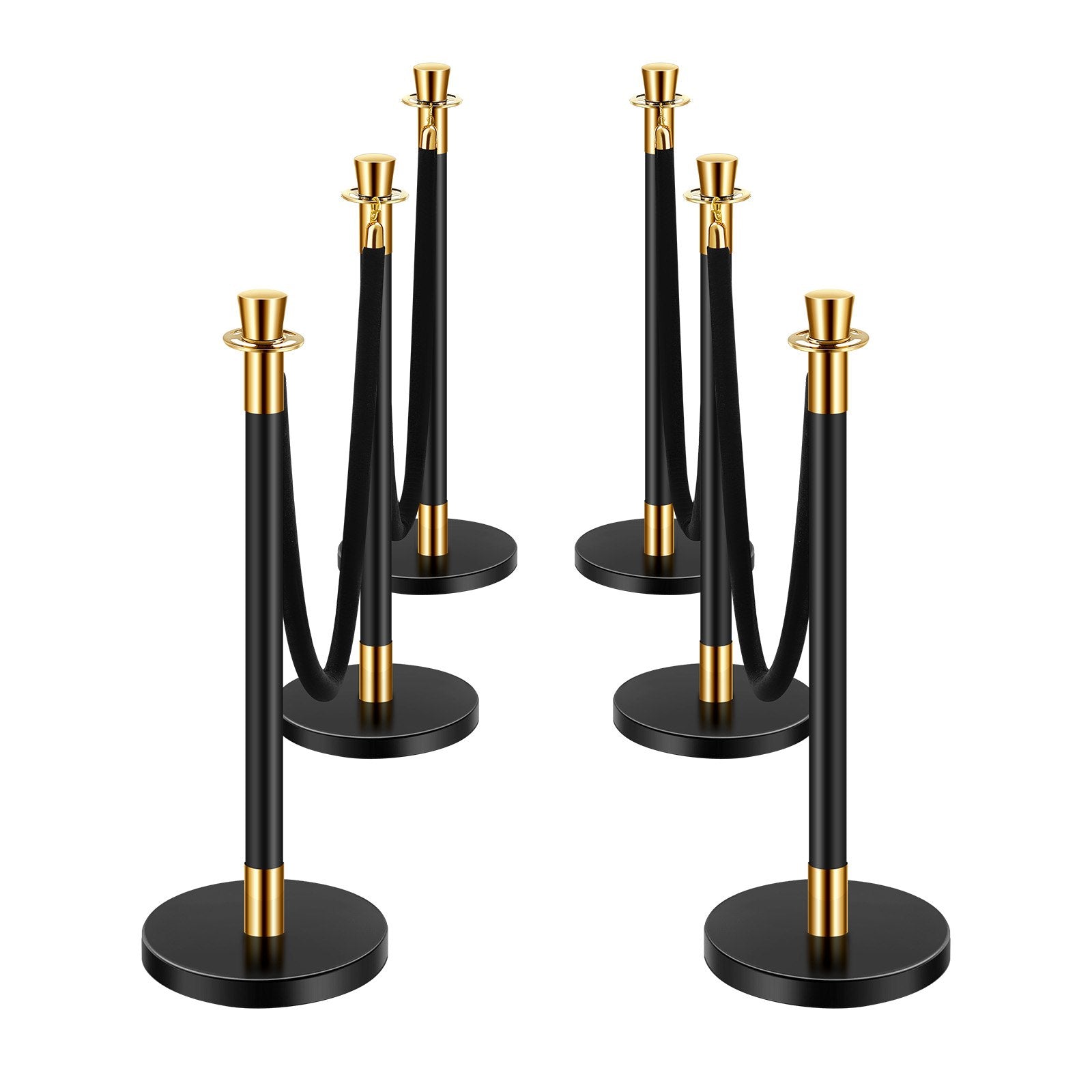 Stolpe, 6 st. avspärrningsbarriär med 4 svarta sammetsrep, 1,5 m lång kö av rostfritt stål med sandinjektionsbas för teater, fest, bröllop, utställning, svart