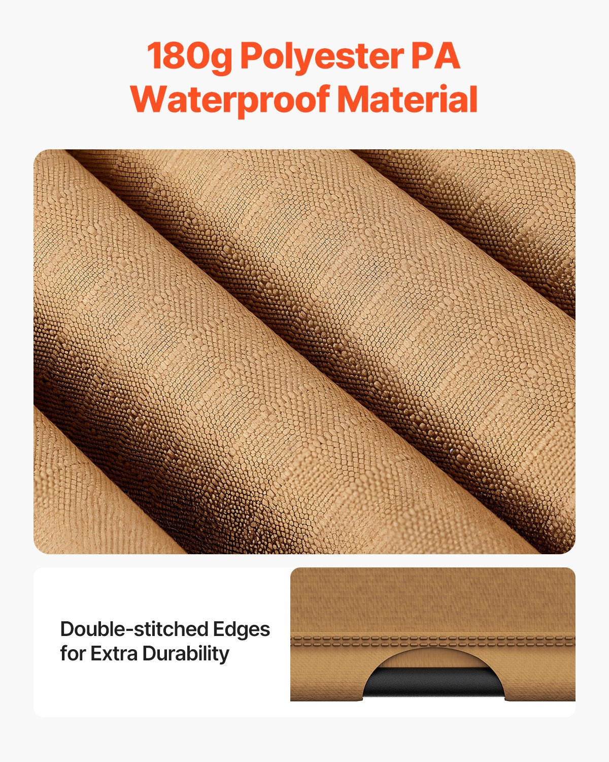 - Slitstarkt polyestertyg: Terrasstaket är tillverkat av 180 g polyester PA vattentätt tyg, vilket ger hög draghållfasthet och utmärkt solskydd. Det är utformat för långvarig användning, motståndskraftigt mot rivningar och ger ett bekvämt skydd. (Obs: Vid kraftigt regn, dra ner ena sidan av taket till den lägsta punkten, säkra med fästklämmorna och använd sandsäckar för att förhindra att vatten samlas ovanpå.)