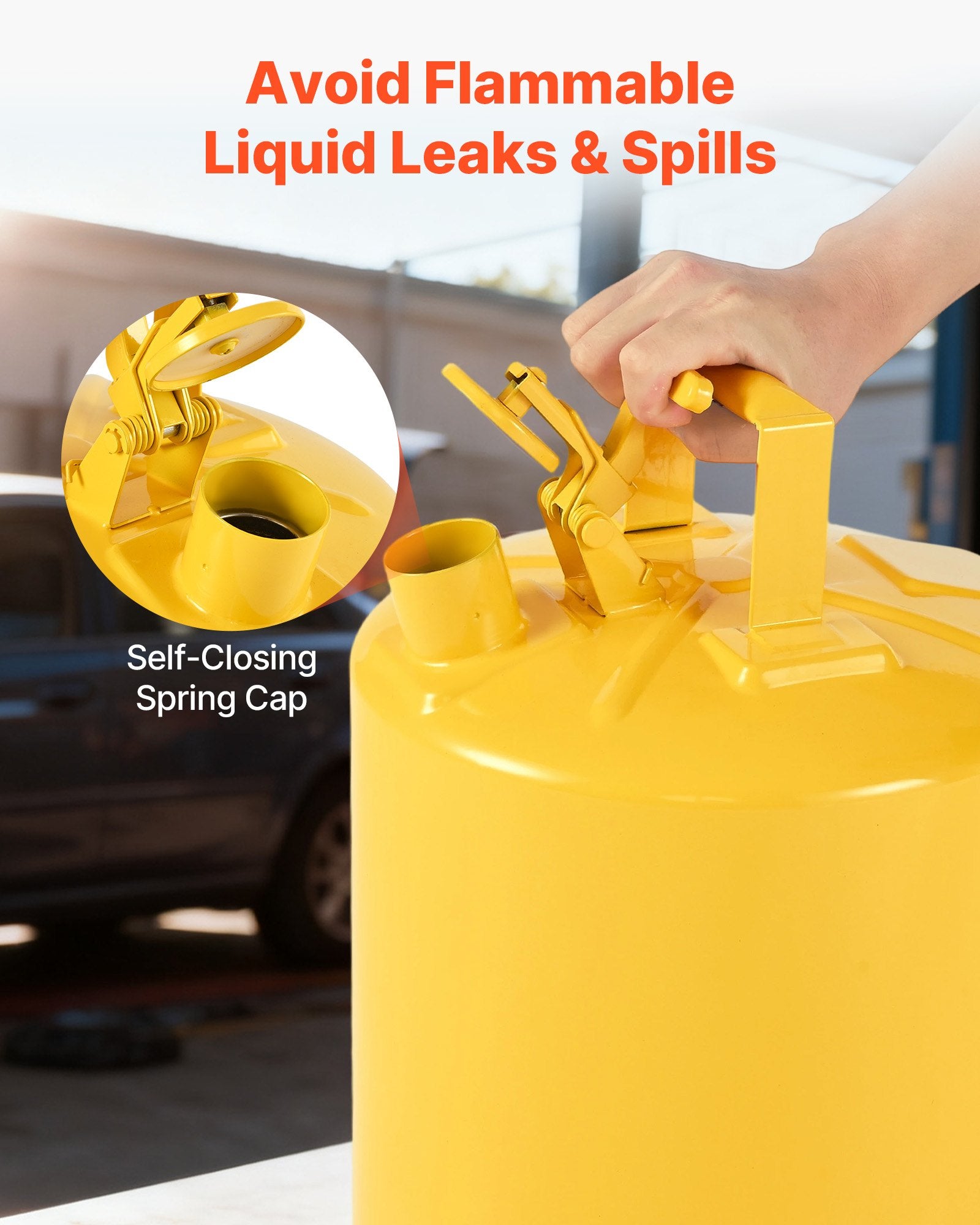 Säkerhetsdunk, 19 l typ I gul säkerhetsdunk för diesel med flamskydd i rostfritt stål, självstängande lock och PE-tratt, förvaringsbehållare för brandfarligt bränsle i kolstål med ergonomiskt handtag