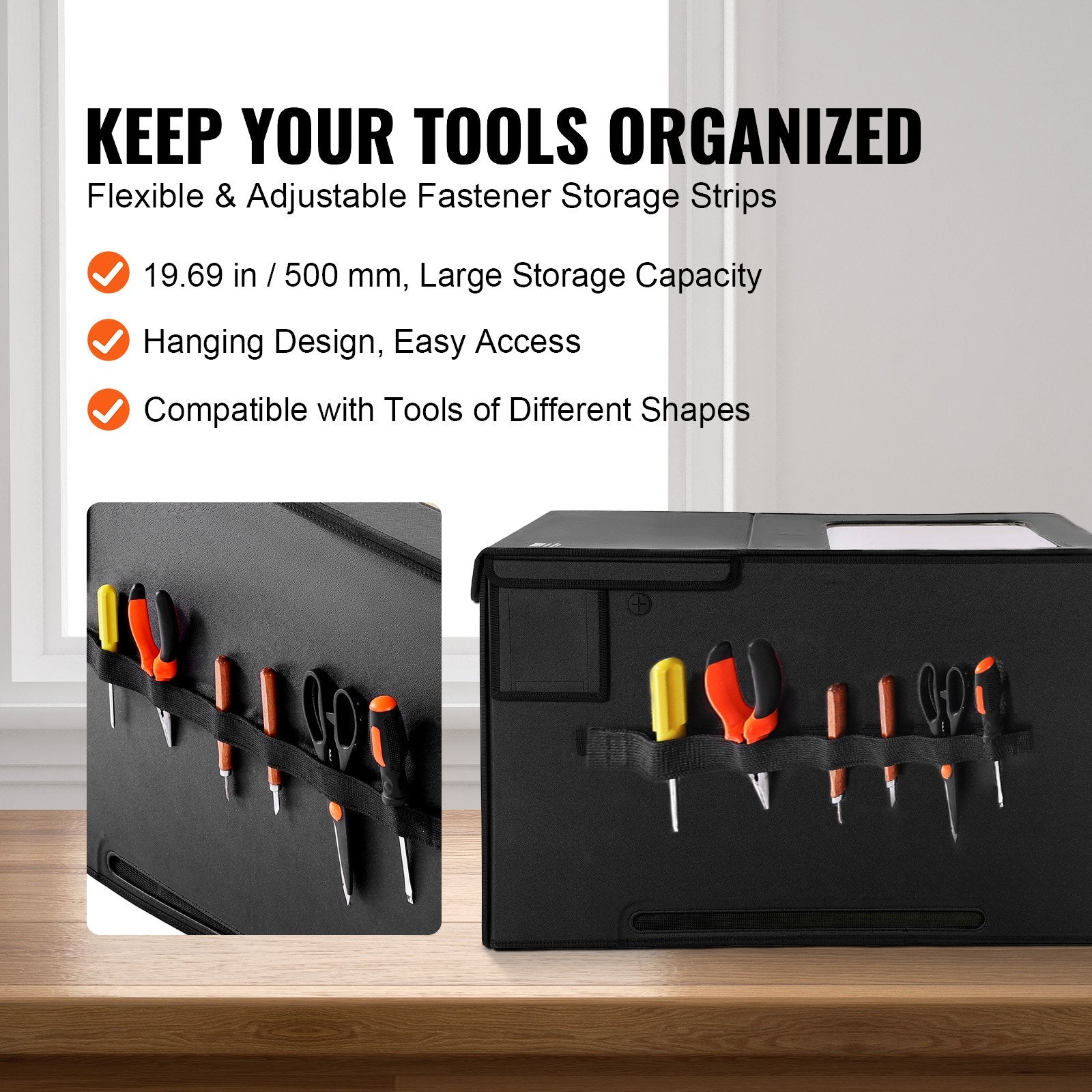 - Verktygsförvaring: 2 x 500 mm självhäftande fästremmar