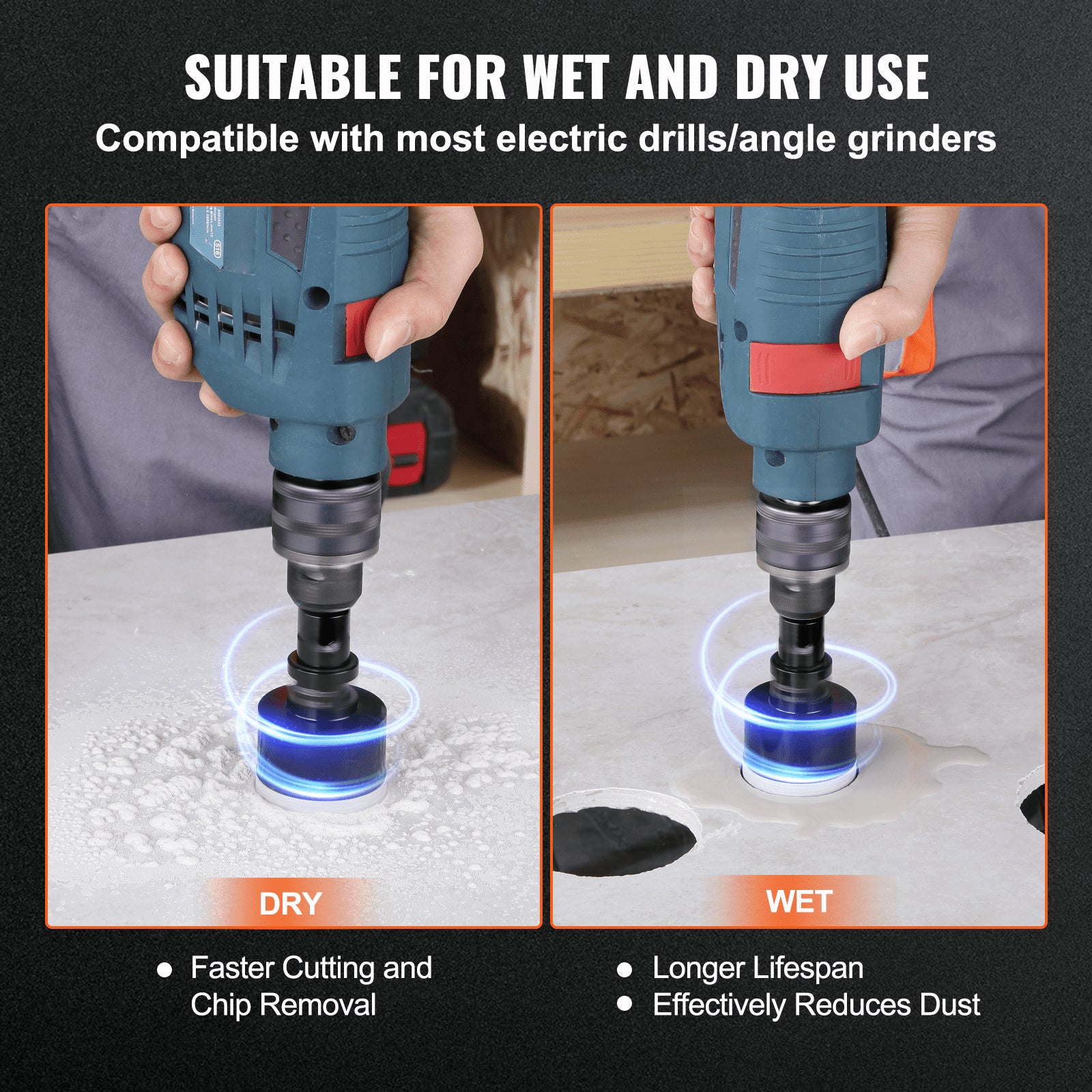 - Breda användningsområden: Vår diamantborr är kompatibel med både torr- och våtborrande elektriska borrar. Oavsett om du behöver såga kakel, granit, marmor eller andra hårda material, presterar den utmärkt i olika situationer.