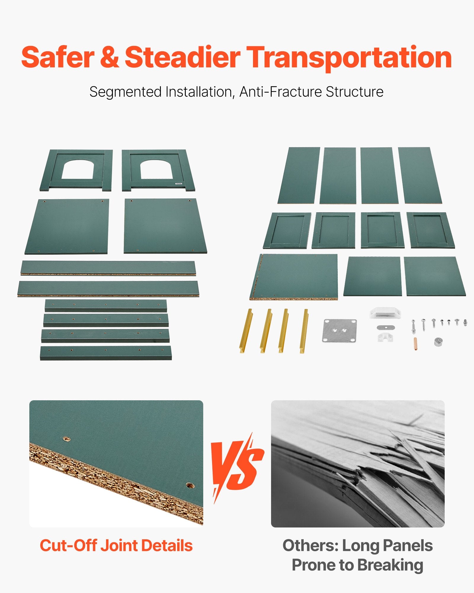 - Skadebeständig konstruktion: Denna dolda kattlåda har en segmenterad paneldesign för säkrare transport, vilket minskar risken för att brädan går sönder. Denna design minimerar repor, bucklor och sprickor, vilket förbättrar uppackningsupplevelsen och minskar antalet returer.