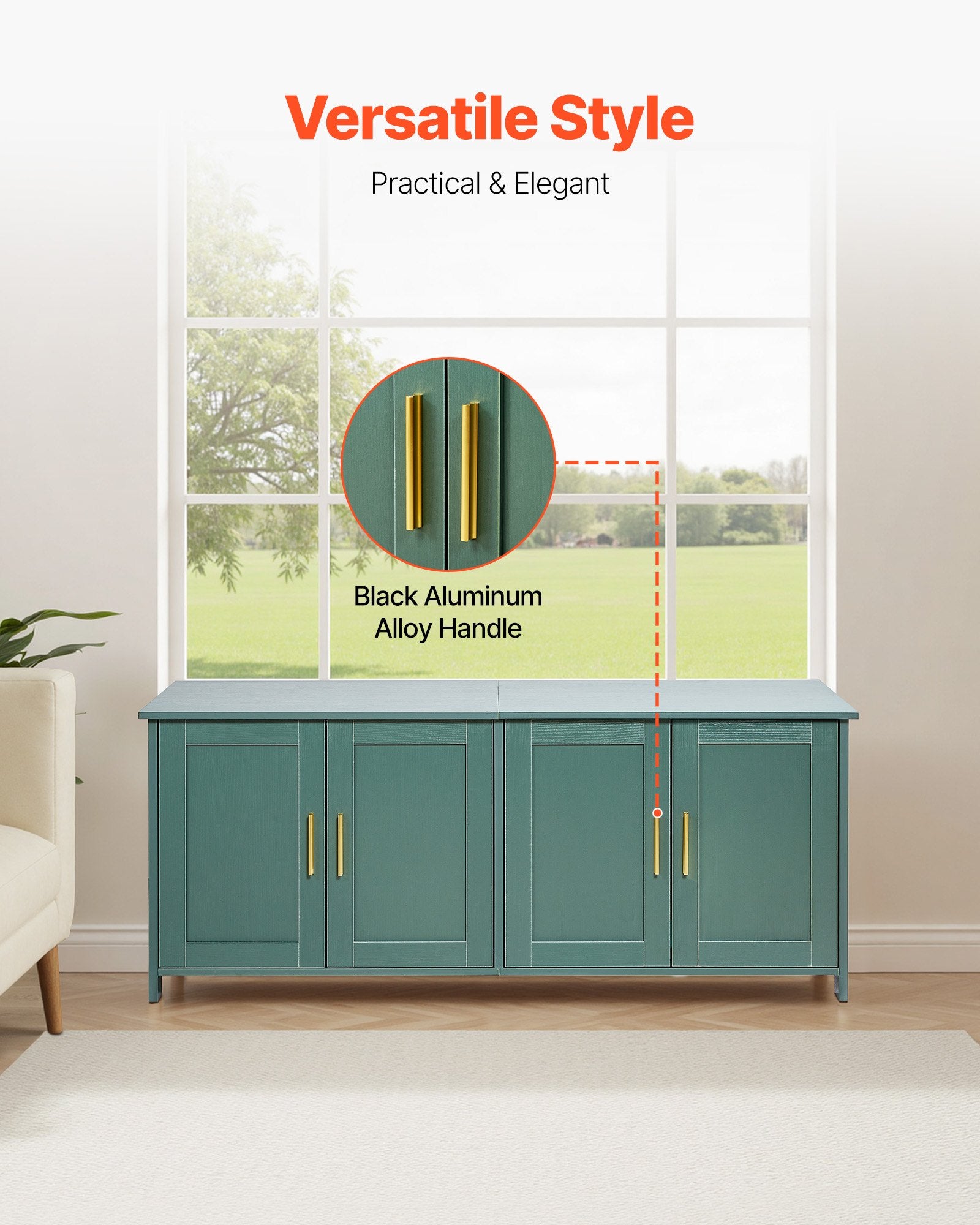 - Färgstil: Retrogrönt + Guldfärgade handtag
