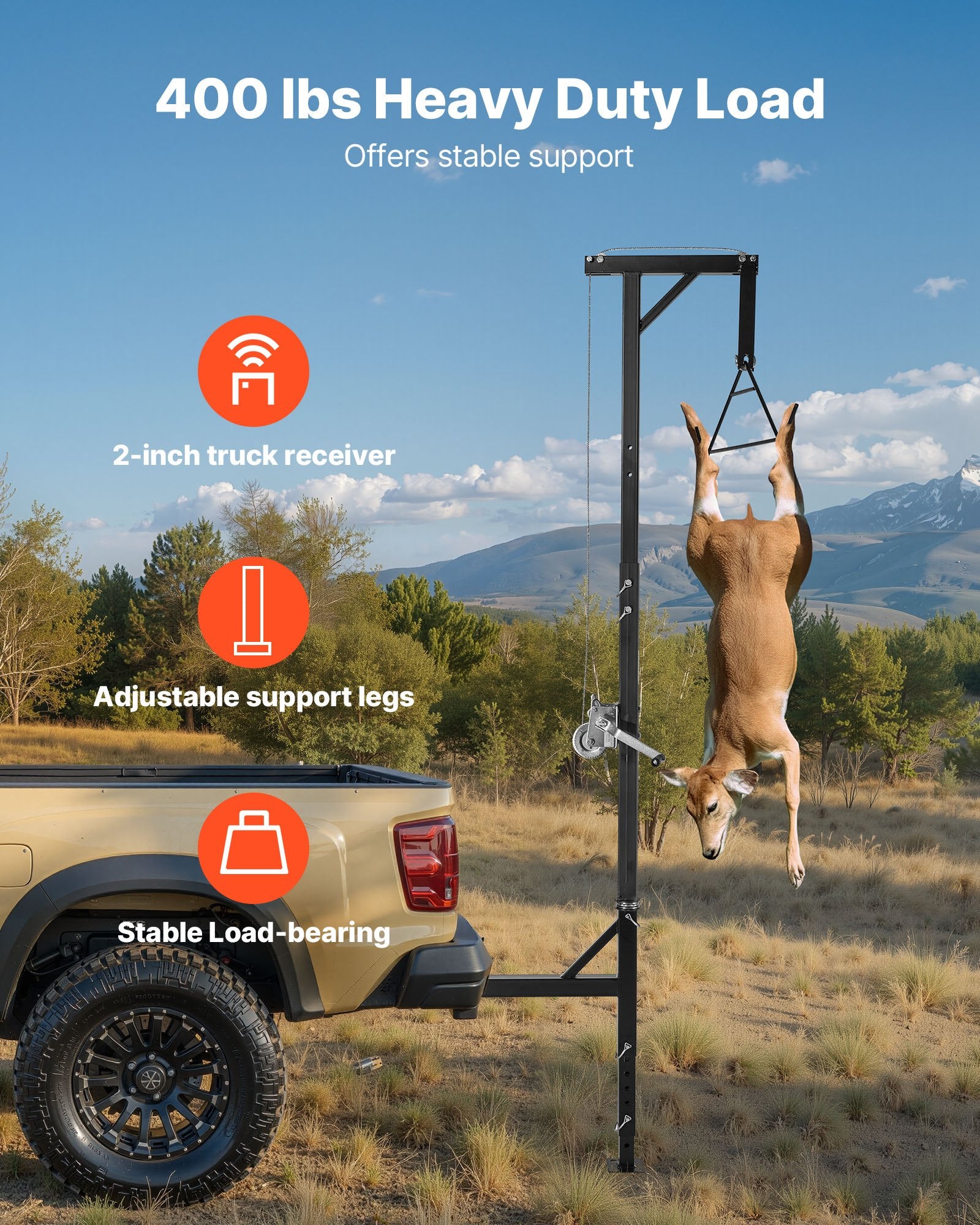 - Mångsidig användning: Vår jaktlyft är utrustad med en 5 cm dragkrok, kompatibel med olika fordonstyper. Perfekt för utomhusjakt, lyft av lantbruksdjur, transport av frukt/grönsaker eller lyft av tunga föremål utomhus.