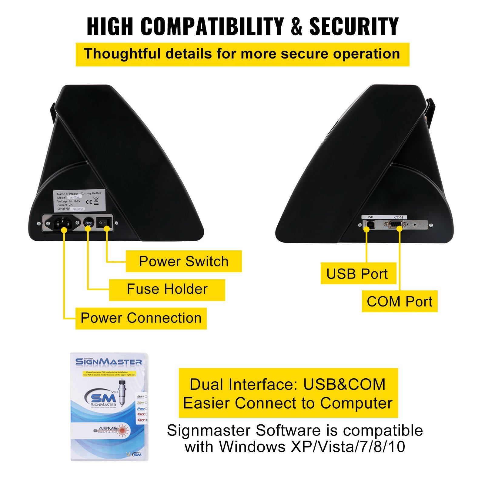- Mångsidig kompatibilitet: Denna plotterskärare i vinyl inkluderar Signmaster-programvara med ett USB-gränssnitt och COM-port för enklare anslutning. Stöder DM/PL, HP/GL flera språk. System: Pentium-processorbaserad PC eller datorer som Windows XP/Vista/7/8/10, ARTCUT, Graph-Cut, Signcut, Signmaster, Flexi, Coreldraw. INTE kompatibel med Mac-system.