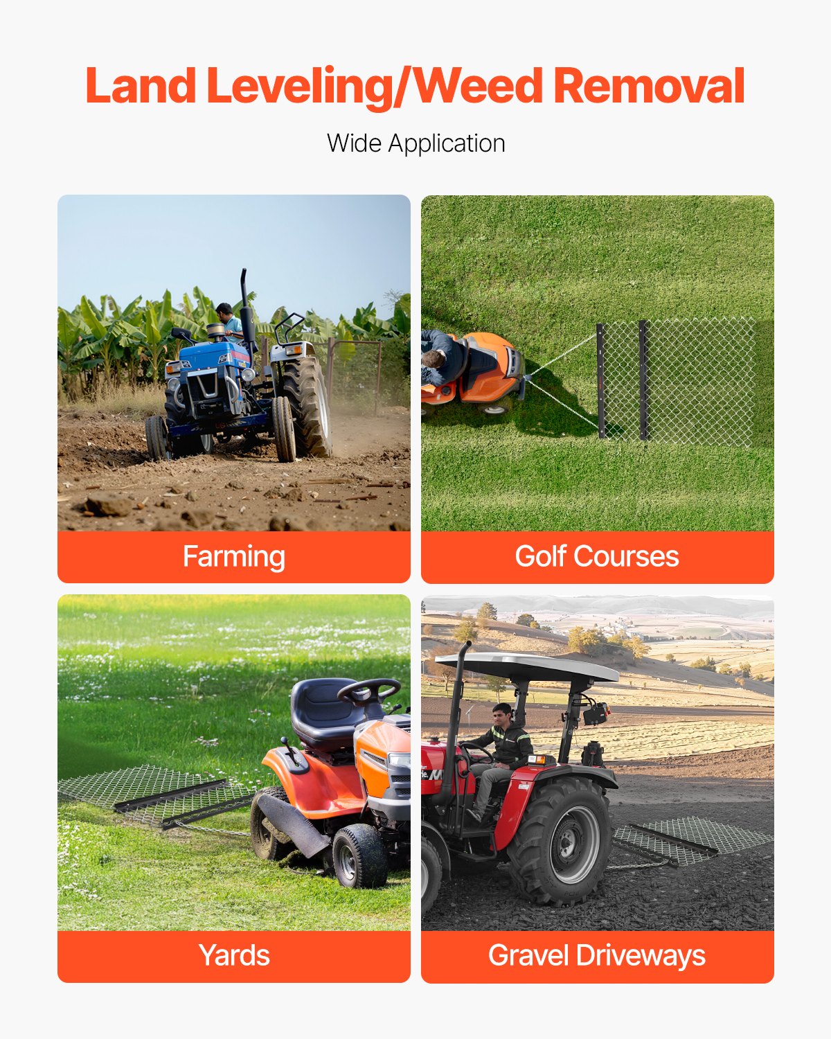- Remarkable Leveling Effect: Easily break up clumps and smooth uneven surfaces with the chain harrow for efficient land leveling.