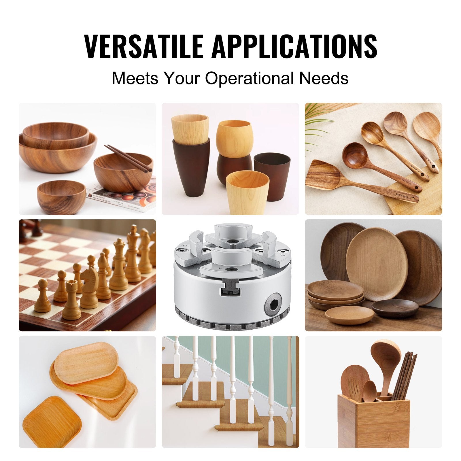 - Brett användningsområde: Oavsett om du arbetar med träbearbetning, borrning, slipning eller andra områden, uppfyller chuckens breda anpassningsförmåga dina krav. Genom att använda vår svarvchuck kan du förbättra bearbetningseffektiviteten, öka driftsflexibiliteten och uppnå exakta och stabila bearbetningsresultat. Oavsett om det är för personligt bruk eller industriell produktion, levererar denna svarvchuck enastående prestanda och tillförlitlighet för att tillgodose dina behov.