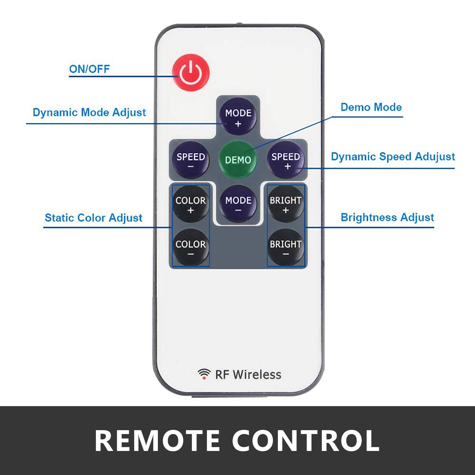 - 【LED-LJUSREMOR】 - 18 olika färger, den kan ändra flera färger via RF-fjärrkontrollen, inkluderar funktioner för ljusstyrka, färg och hastighet för att säkerställa bästa möjliga upplevelse.