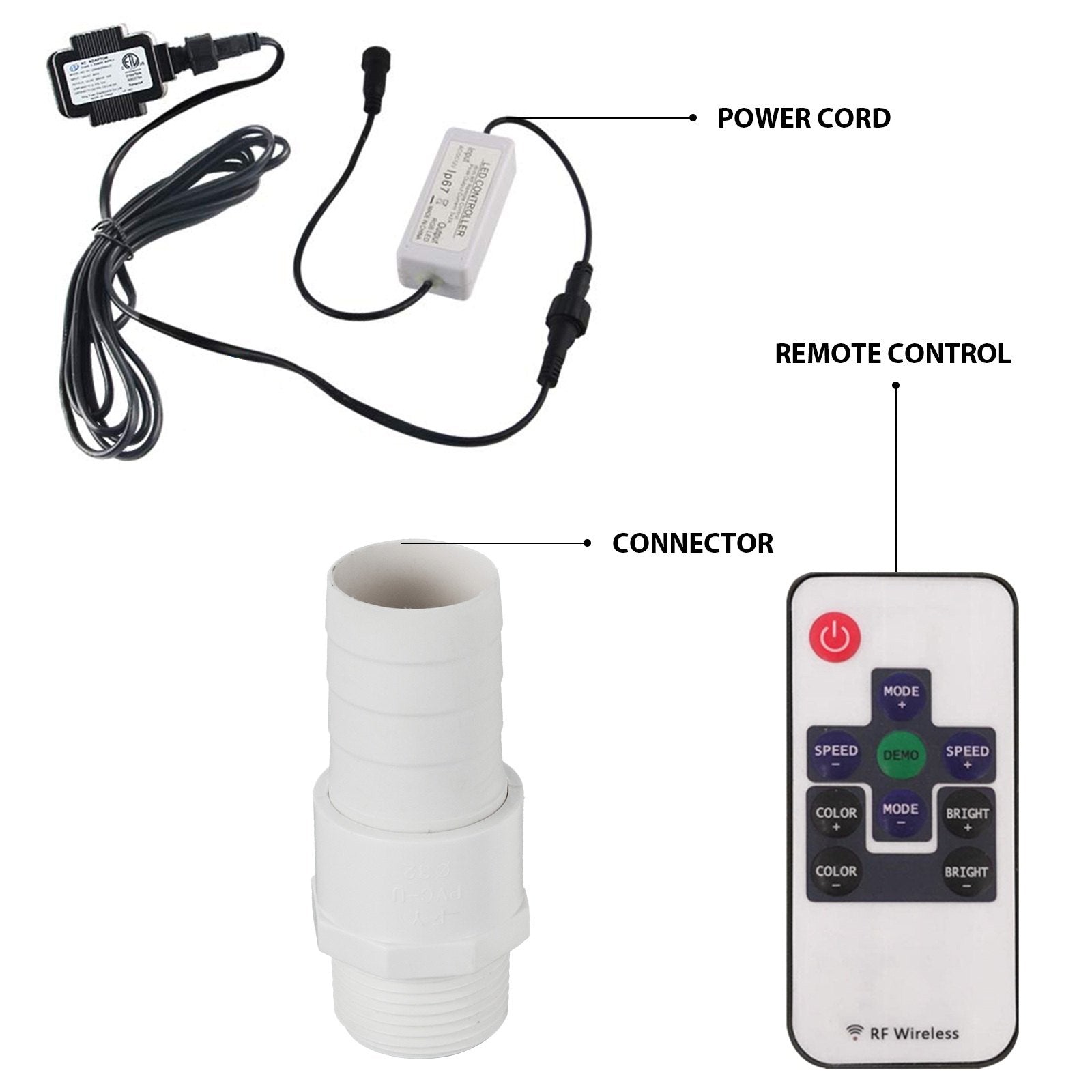 - 【POOLFONTÄNS MÅTT】- Total storlek: 43 x 10 x 8 cm (B x D x H). Innerdiameter på anslutning: 32 mm. Längd på anslutning: 22 mm.
