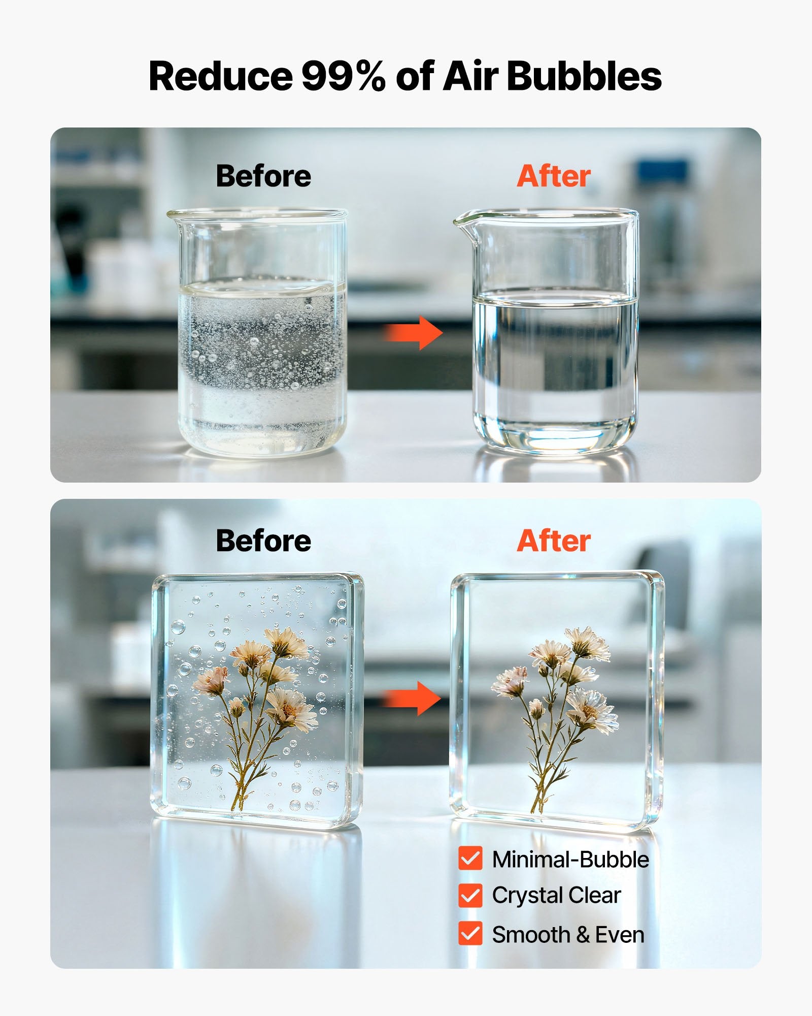 - Effektiv avgasning: Denna tryckbehållare är utformad för gjutprojekt och applicerar upp till 0,55 MPa/80 psi för att effektivt avlägsna 99 % av de inre bubblor, vilket producerar bubbelfria, kristallklara gör-det-själv-projekt med släta ytor, perfekt för konstnärer, hantverkare och studioprojekt.