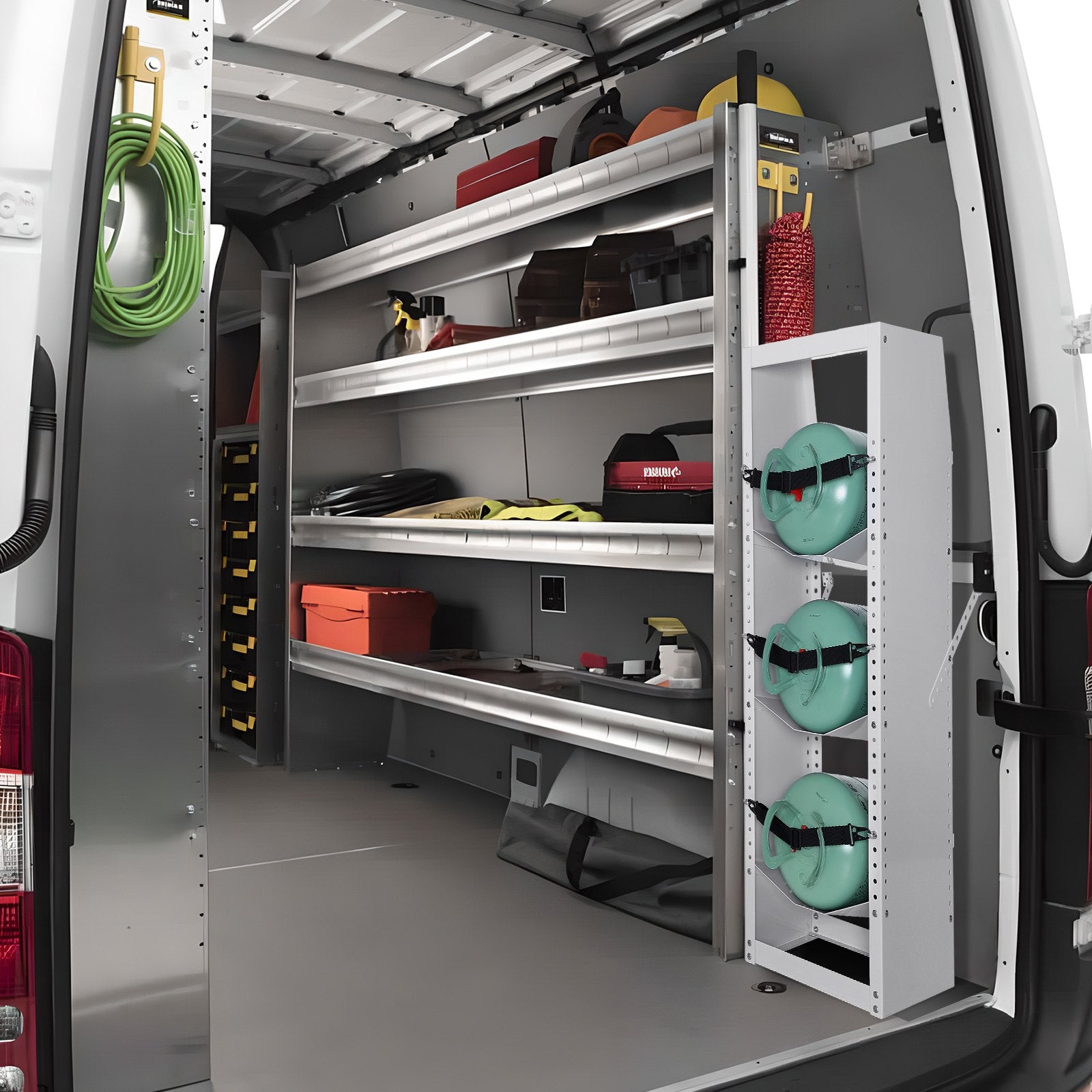 - Kompatibel med olika tankar: Vårt kylmedelstankhyllställ har justerbara hål fram och bak, vilket gör att du kan anpassa hyll- och stopphöjderna baserat på tankstorlekar. Hyllan mäter 372x355x1170 mm (14,64x13,97x46,06 tum) och rymmer standardflasktankar som väger 13,5 till 22,5 kg. Maximera utrymmesutnyttjandet samtidigt som du säkerställer korrekt förvaring.