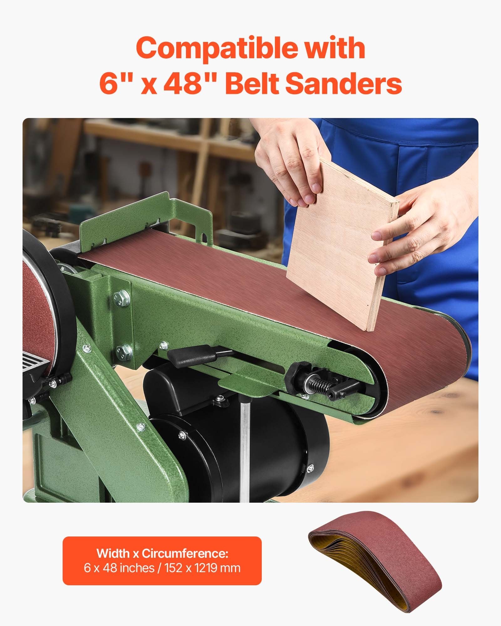- Premium aluminiumoxid: Tillverkade av högkvalitativ aluminiumoxid, dessa slipband på 152 x 1219 mm (6 x 48 tum) är idealiska för träbearbetning och allmänna slipningsuppgifter på trä, stål, aluminium och icke-järnmetaller. De är hållbara och värmebeständiga och ger effektiv slipning för en slät yta.