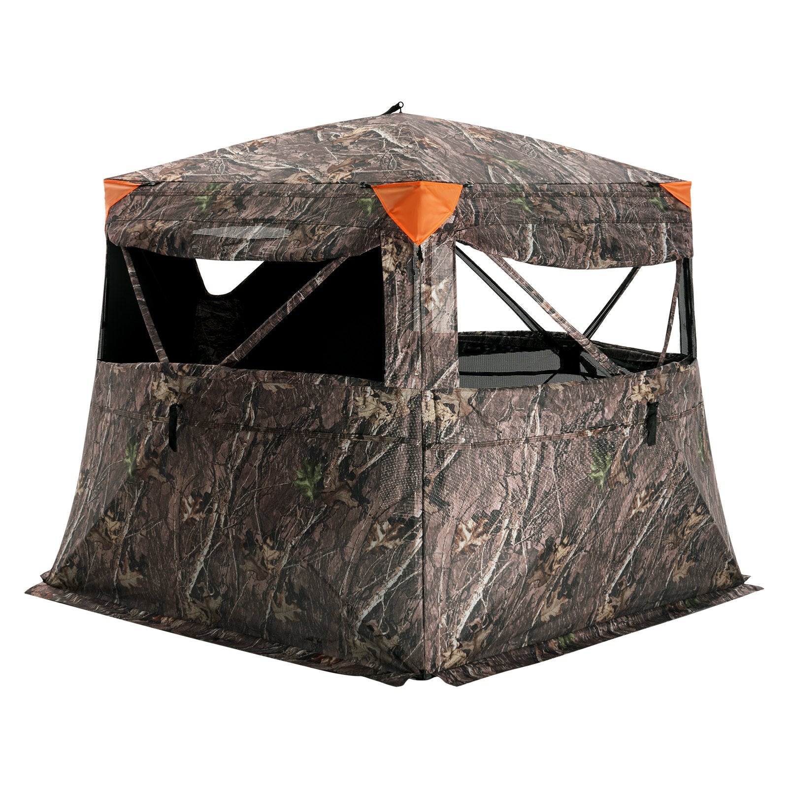 - Tyst och diskret: Markskyddet är tillverkat av kamouflagetyg med infällda öglor på toppen och runt mitten, vilket gör det lättare att smälta in i jaktmiljön. Det har också tysta skjutbara fönster och en markkappa för att minimera upptäckt och minska störningar för viltet.