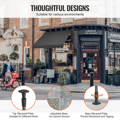 - Lätt att justera: Denna manuellt infällbara markis möjliggör höjdjusteringar mellan 200-300 cm, vilket gör det möjligt att anpassa sig till olika dörr- och fönsterhöjder och ge flexibilitet för ditt utomhusutrymme.