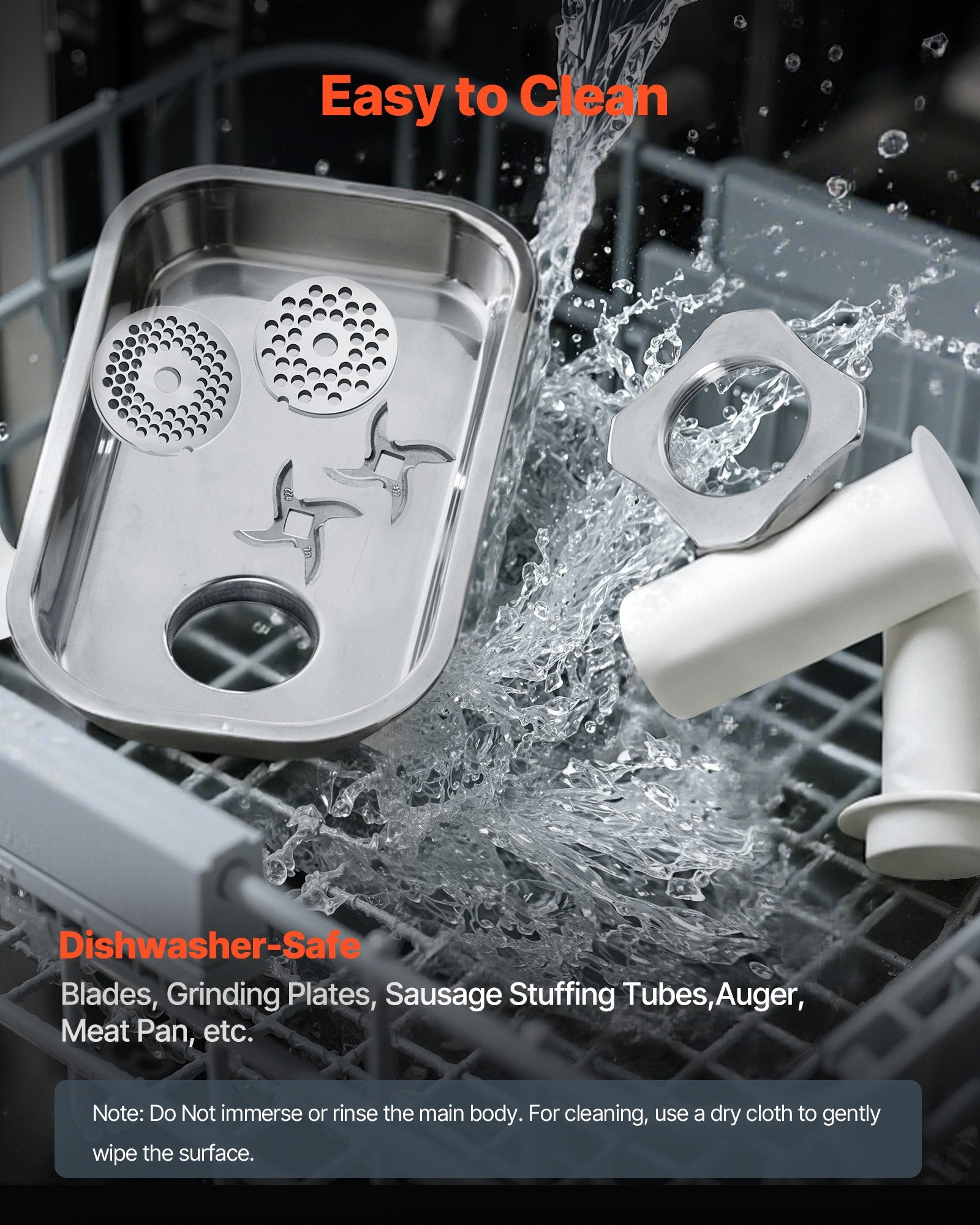 - Robust konstruktion: Den elektriska köttkvarnen är tillverkad av kolstål och rostfritt stål, med vassa SUS420-blad som är hållbara och kan mala kycklingbrosk, fryst kött och mer.