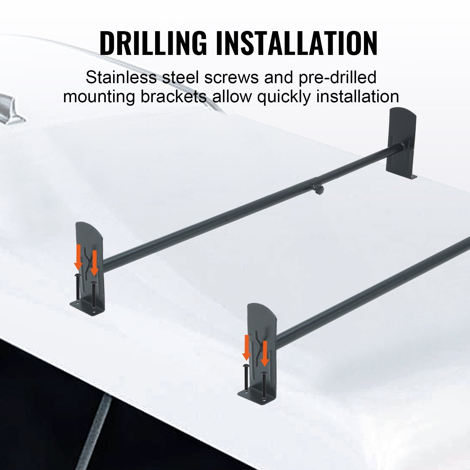 Takräcke för skåpbil, takräcken i legerat stål med 2 stänger, takräcke med kapacitet 227 kg, justerbar längd 910-1330 mm, stegräcke för skåpbilar, kompatibelt med Chevrolet Express, GMC Savana etc., borrfäste