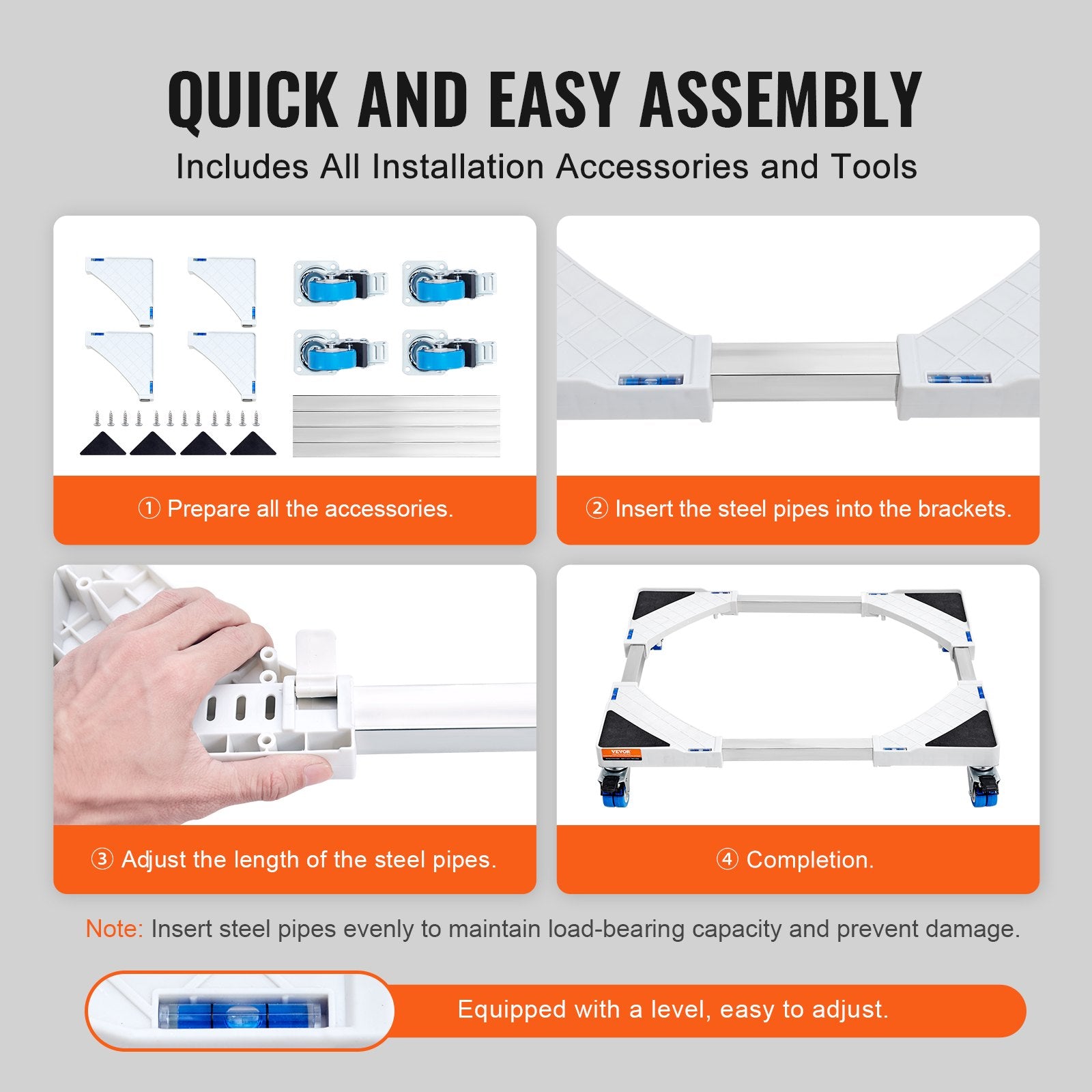 - Universell kompatibilitet med de flesta modeller: Den intuitiva designen passar alla standardmaskiner, inklusive Samsung, LG, Whirlpool, General Electric, Miele, Electrolux, Bosch med flera. Du kan tryggt höja tvättmaskiner och torktumlare, bland andra apparater.