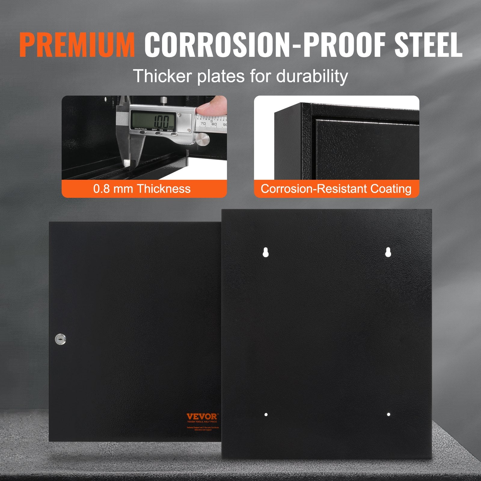 - Hållbart kvalitetsstål: Tillverkat av korrosionsbeständigt kallvalsat stål är detta nyckelskåp byggt för att hålla i åratal utan att skadas. Med en tjocklek på 0,8 mm tål det dagliga stötar och tryck vid regelbunden användning, vilket garanterar säker förvaring av dina nycklar.