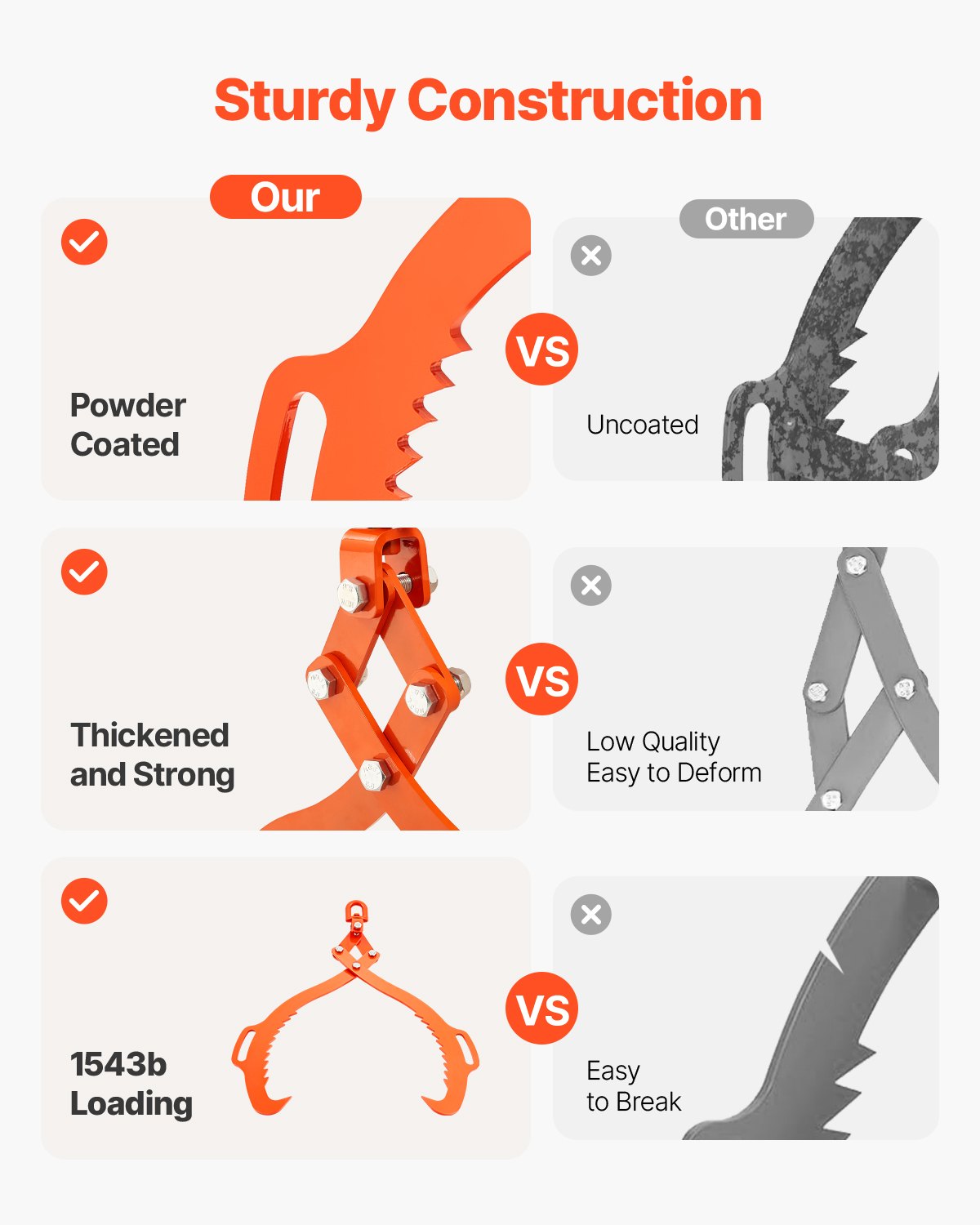 - Hög lastkapacitet: Med en maximal lastkapacitet på 690 kg gör dessa stocklyfttänger tunga uppgifter som transport av stockar, trådnät och höbalar enklare och säkrare. Utrustade med en 360° roterande krok möjliggör de snabba justeringar och smidig hantering. Den ergonomiska designen minimerar trötthet, vilket förbättrar den totala komforten och användbarheten.