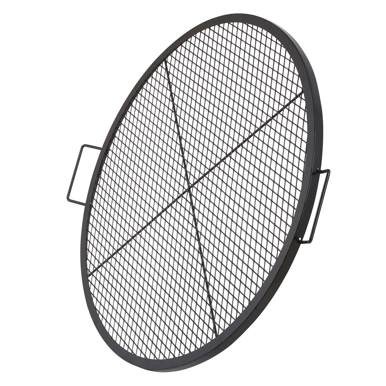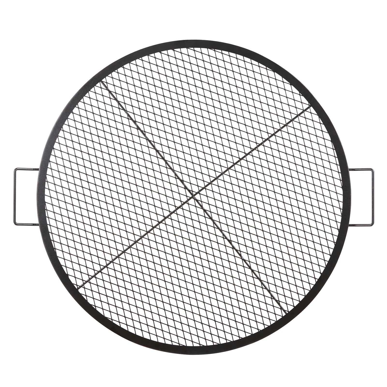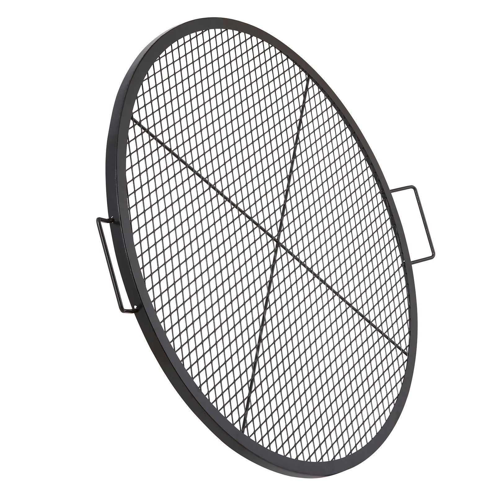 X-Marks eldstadsgrillgaller, runt matlagningsgaller, kraftigt stålgrillgaller för lägereld med handtag och stöd X-tråd, bärbart campingkokkärl för utomhusfester och sammankomster, 36 tum svart