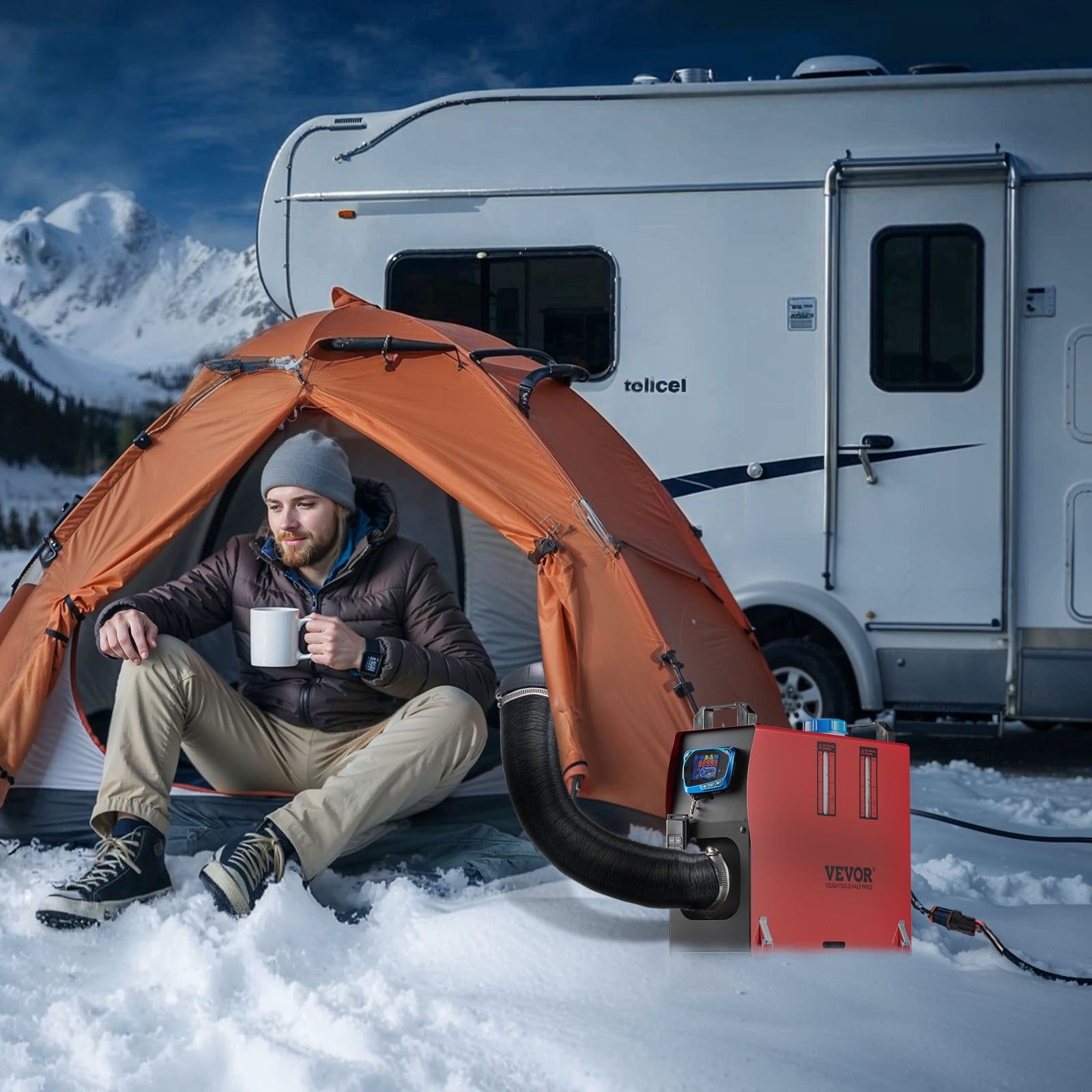 - Dubbla kontrollalternativ: Den bärbara dieselvärmaren har en 27 meter lång fjärrkontroll för förvärmning från utsidan av fordonet, vilket håller interiören varm och undviker frost. LCD-skärmen möjliggör temperaturjustering mellan 1-3°C och 38°C för att passa dina behov.