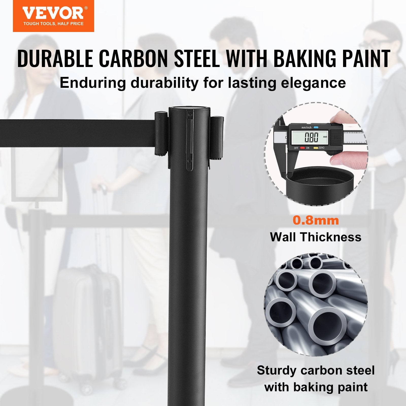 - Estetik möter hållbarhet: VEVOR-stolpar för folksamlingar – Ditt bästa val för effektiv platshantering! Tillverkade med kolstålsstolpar med bakfärg (0,8 mm väggtjocklek) och robusta baser, garanterar de inte bara pålitlig kökontroll utan tål även långvarig användning.