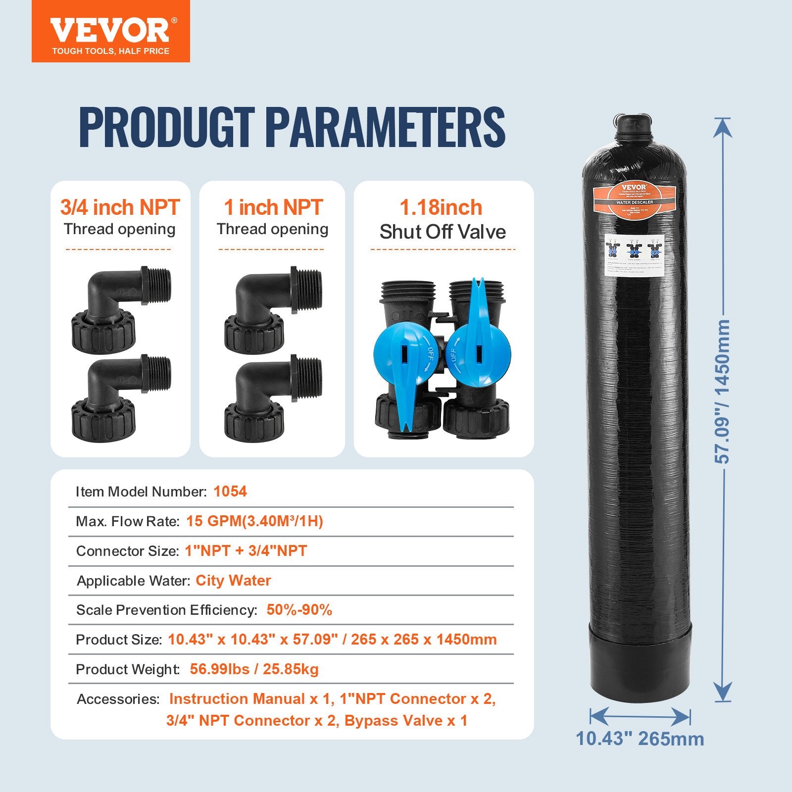 Saltfritt avkalkningsmedel för hela huset, vattenfilter för stadsvatten, 1100 000 gallon vattenavkalkningsmedel för hela huset för alla typer av rör, 1" BSPT och 3/4" BSPT, för familjer på 5-8 personer