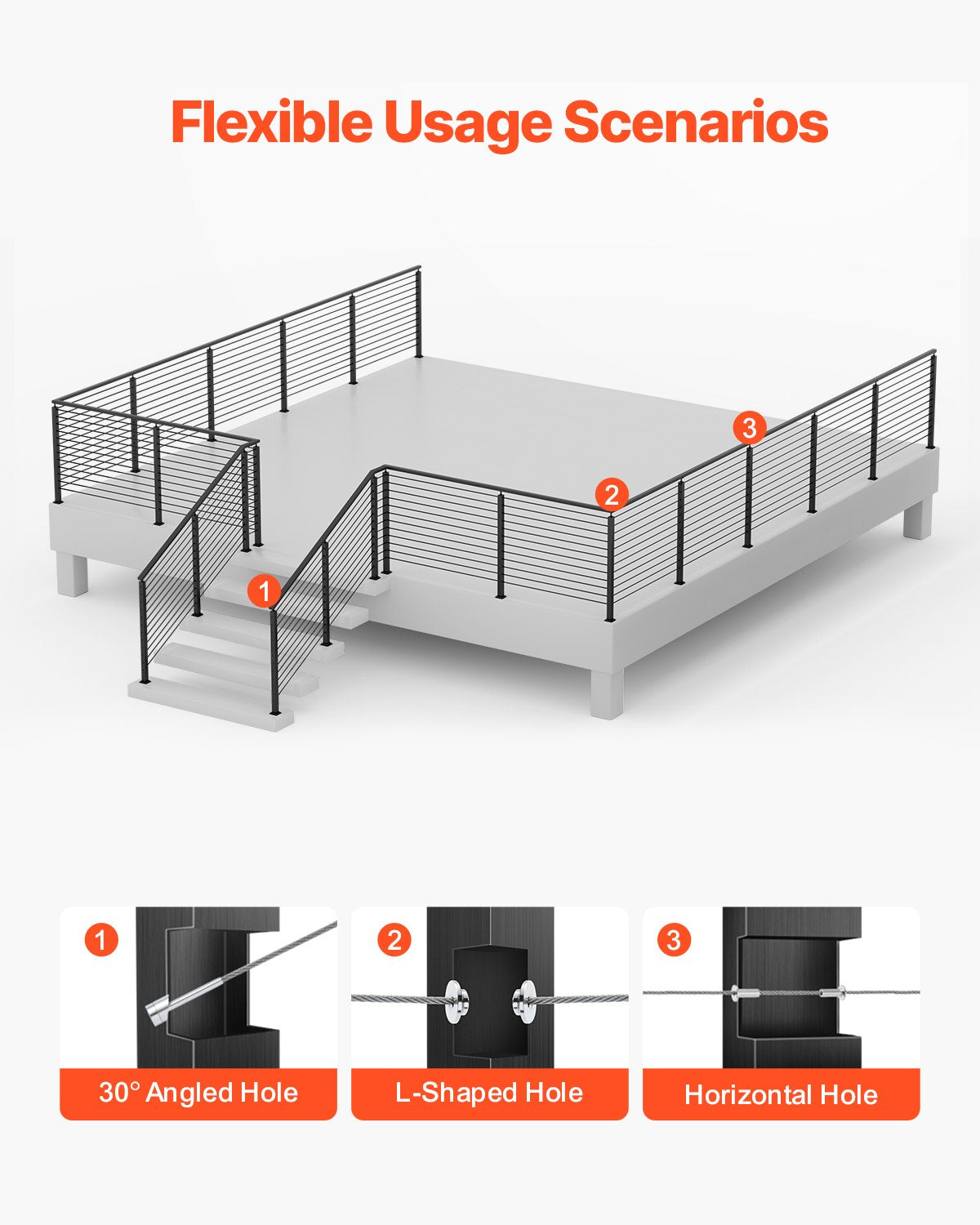 - Multi-Scene Protection: Our cable rail post is suitable for both indoor and outdoor protection, including decks, stairs, porches, fences, patios, balconies, gardens, residential buildings, commercial offices, hotels, garages, and more