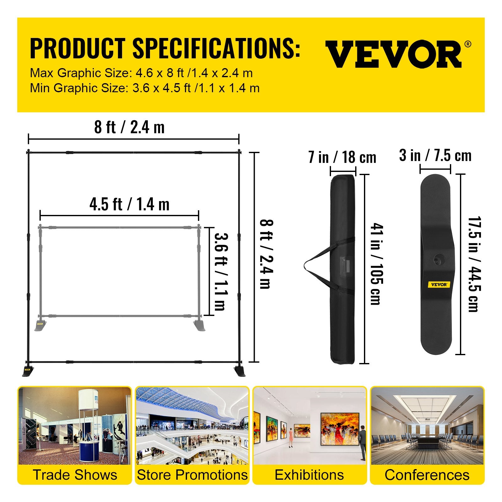 - Adjustable Display Size: The 4 Packs backdrop frame feature a telescopic design with adjustable width of 4.5 ft-8 ft/1.4 m-2.4 m and an adjustable height of 3.5 ft-8 ft/1.1 m-2.4 m. All poles are flexibly meet your individual needs, convenient to fit for banners or posters in different sizes.