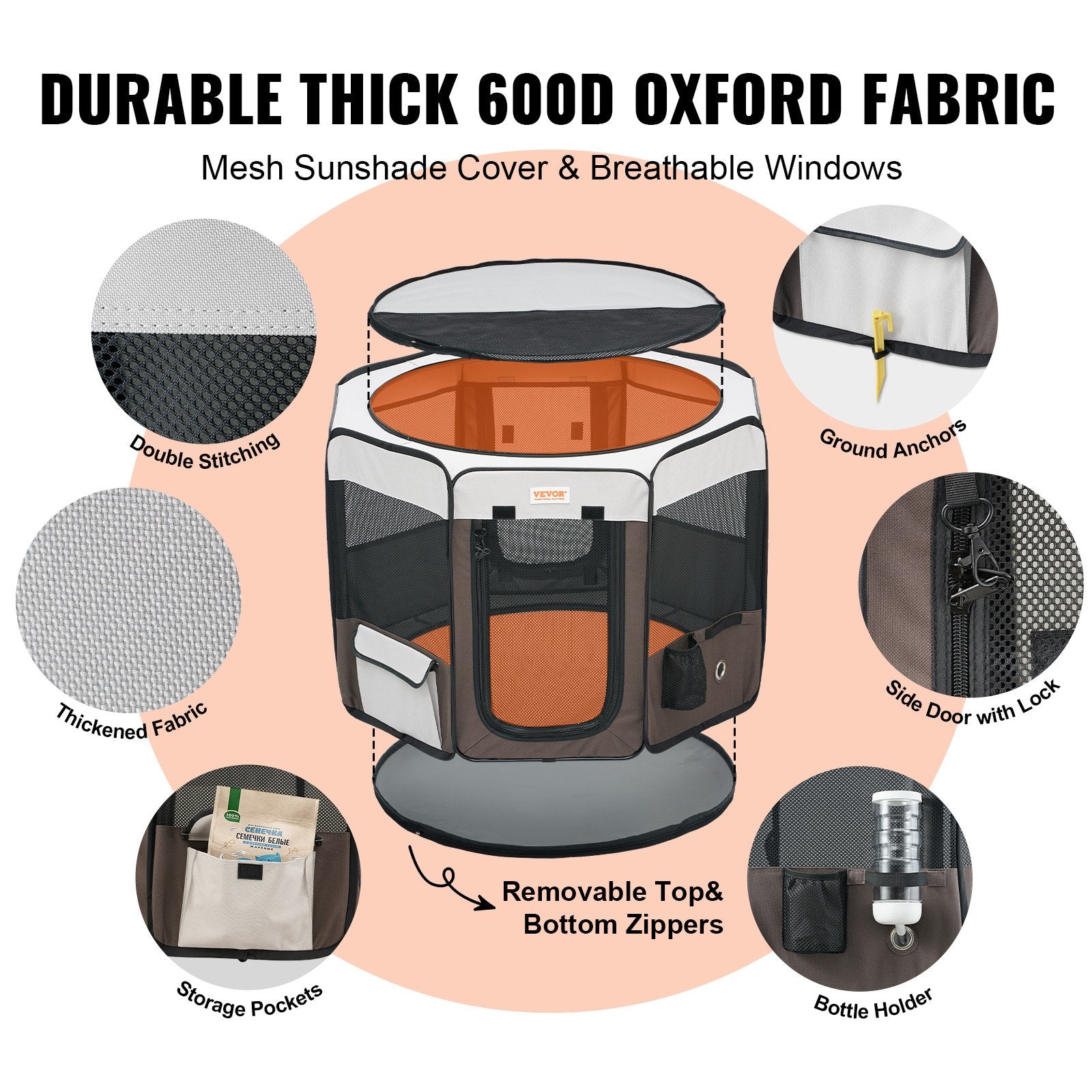 Foldable Pet Playpen, 36 inch Portable Dog Playpen, Crate Kennel for Puppy, Dog, Cat, Premium Waterproof 600D Oxford Cloth, Removable Zipper, for Indoor Outdoor Travel Camping Use (Octagon, M)