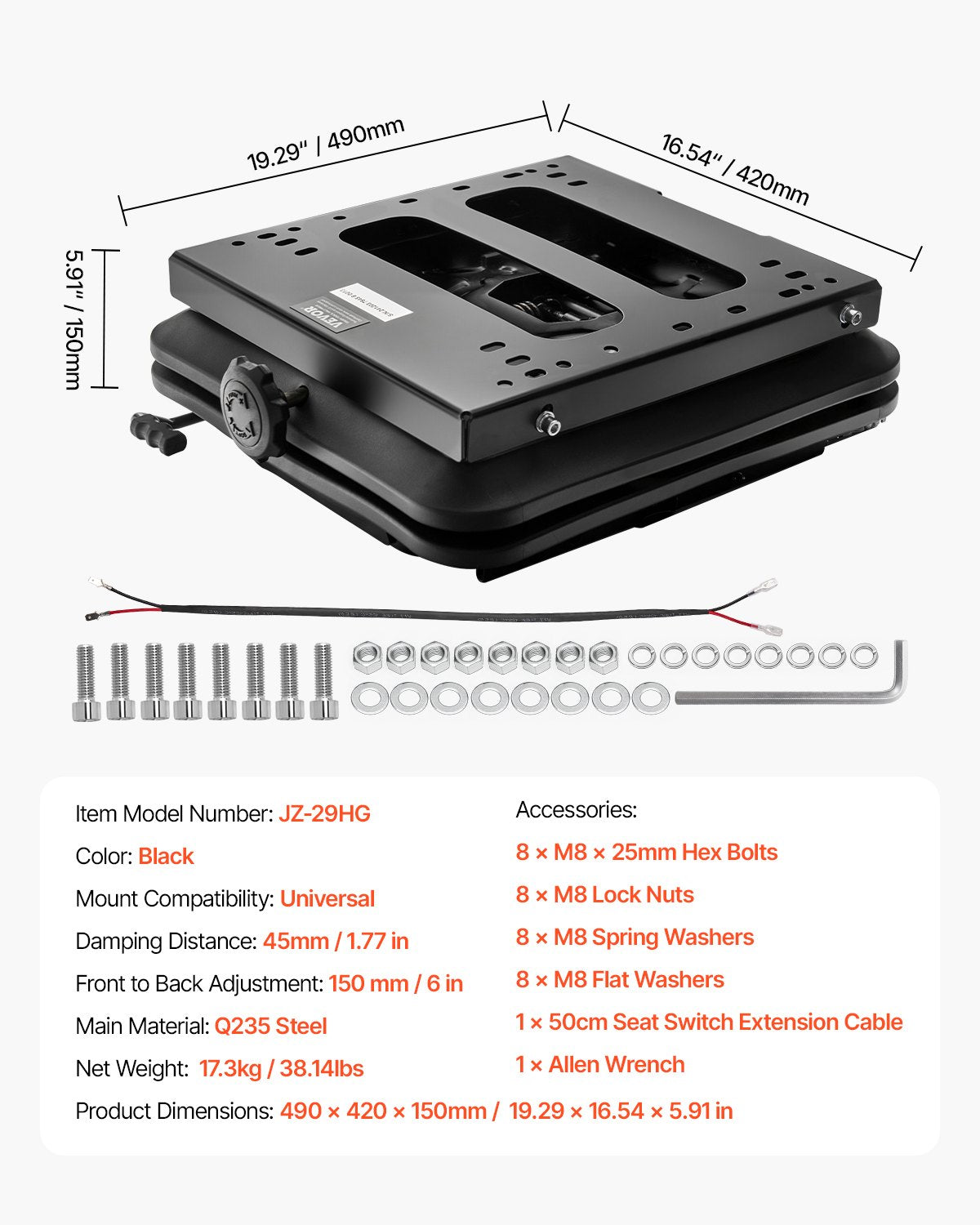- Durable Construction: Constructed from heavy-duty 3mm (0.12") steel and treated with an electrostatic powder coating, this unversal seat suspension kit offers excellent durability and corrosion resistance. The exterior features waterproof PVC dustcover for outtdoor working.
