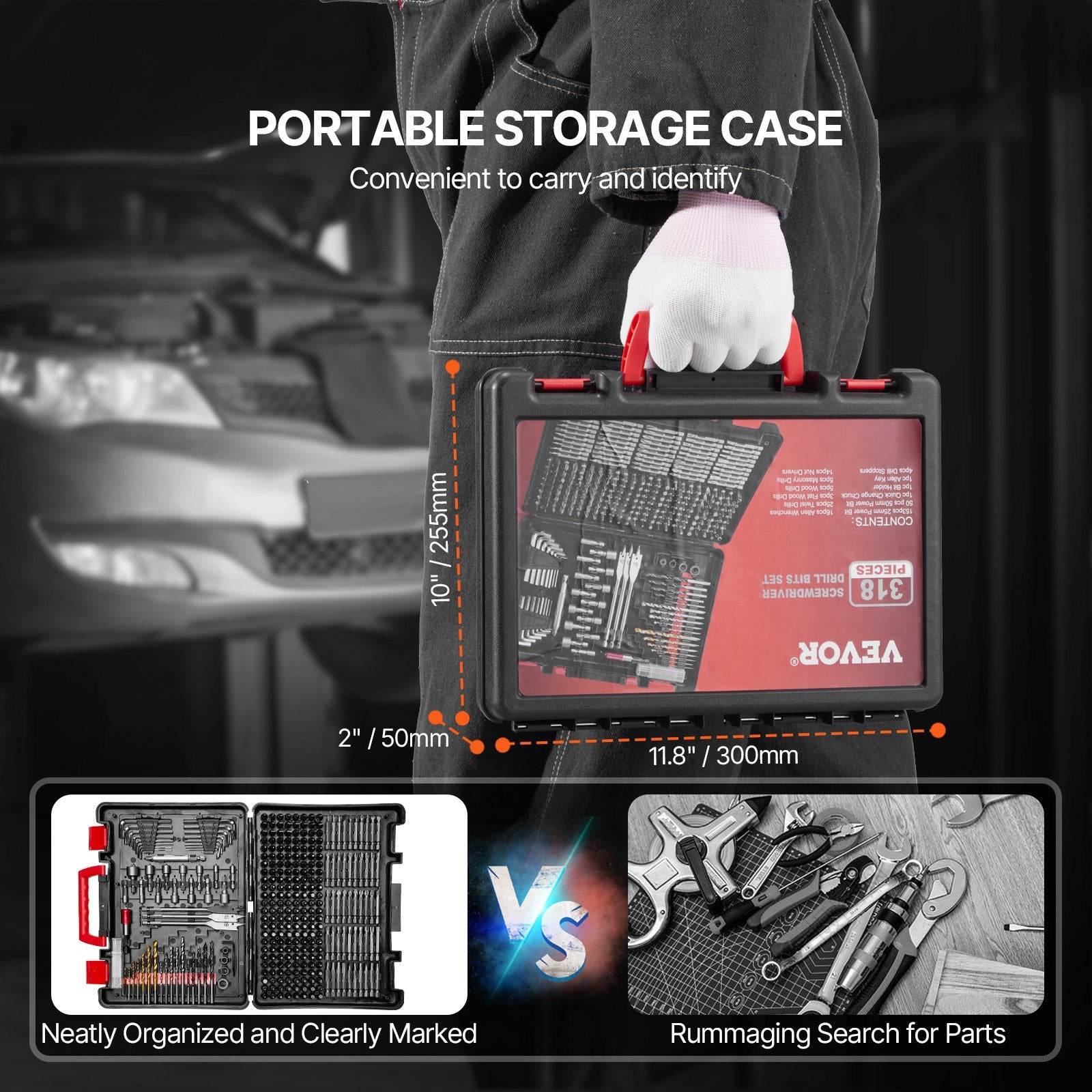 Drill Bit Set, 318 Pieces Drill and Driver Bit Set, Screwdriver Bit Set Suitable for Wood Metal Cement Drilling and Screw Driving, Drill Bit Sets Combo Kit Assorted in Organized Carrying Case