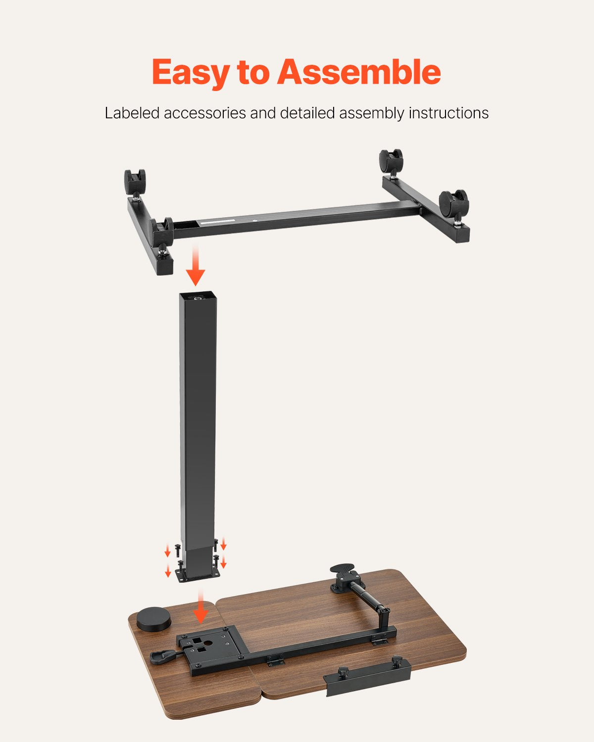 - Adjustable Height: With a smooth hydraulic system, this overbed table adjusts from 27.75 in / 70.5 cm to 42.72 in / 108.5 cm — ideal for sitting and standing. Plus, the tabletop tilts 0-60°, making it ideal for reading, working, or drawing.