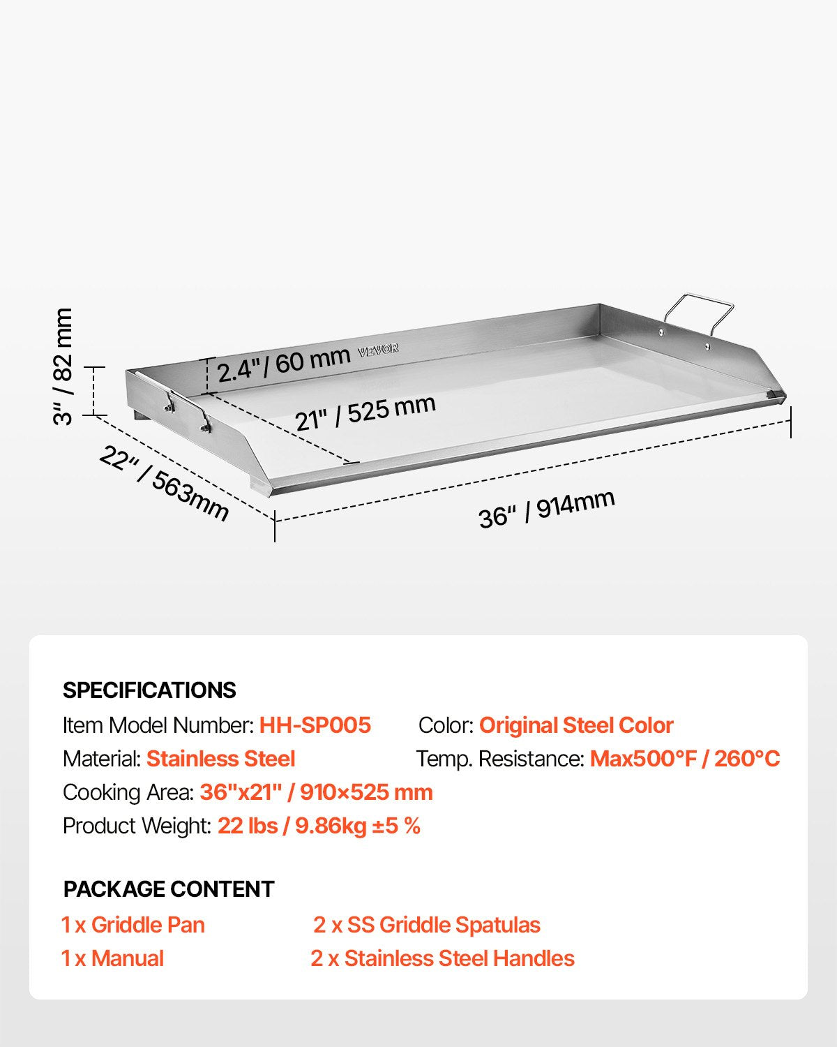 Stainless Steel Griddle, 36x22 inch Universal Flat Top Rectangular Plate, Gas Grill Griddle for BBQ Grill, Teppanyaki, Portable Family Cookware with Handle, for Camping Tailgating Party