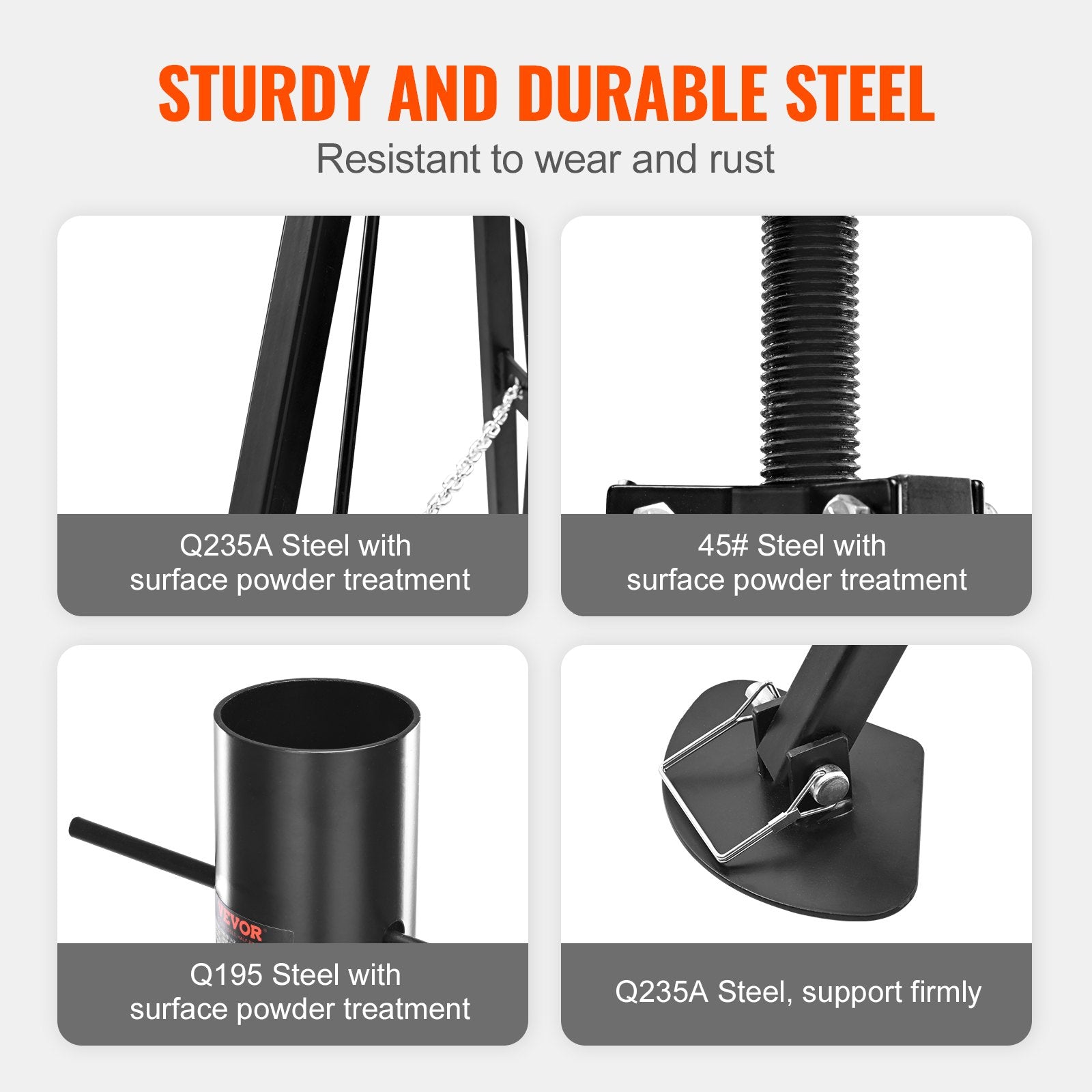 - Built to Last: Crafted from high-strength Q235A steel for the jack base and Q195 steel for the hitch cup, our 5th wheel stabilizer tripod is engineered for durability. The powder-coated surface resists corrosion and rust, while the sturdy 45 steel screws ensure a long service life.