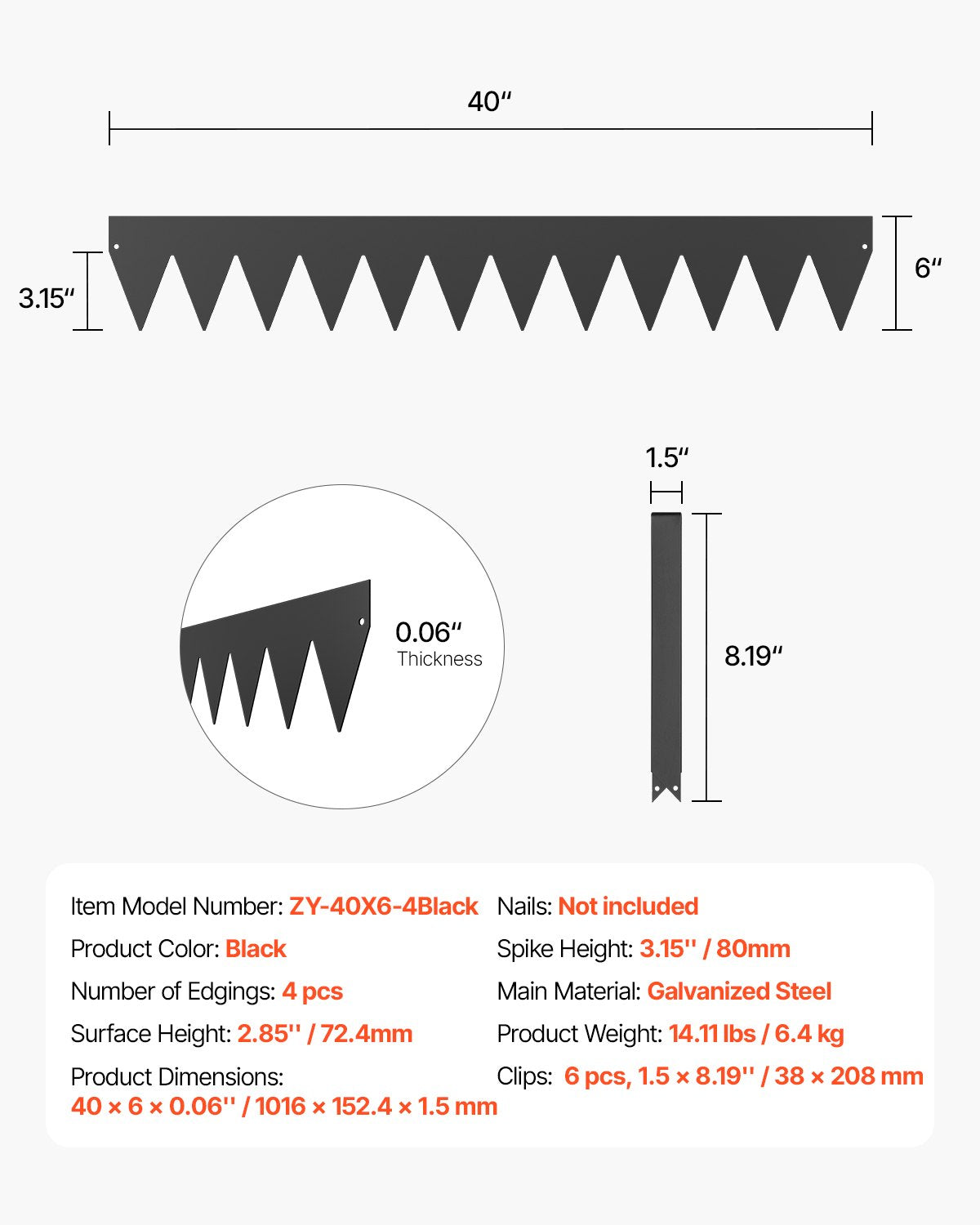 - What You’ll Receive: The set includes 4 metal yard edging, 1 pair of installation glove, 6 clips, and 1 instruction manual. The extended spike design makes it easier to drive the pieces into the ground, reducing installation effort. Spend more time enjoying your outdoor space and less time on maintenance!
