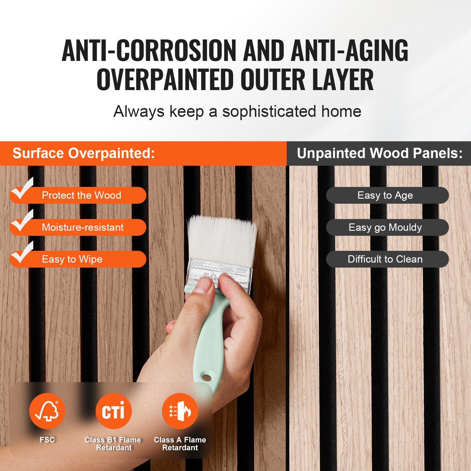 - Anti-Aging Coating: The outer layer is treated with a corrosion-resistant, anti-aging finish that complies with FSC and B1 fire safety standards. This not only enhances the wood's durability but also provides excellent safety for your home, making daily cleaning a breeze.