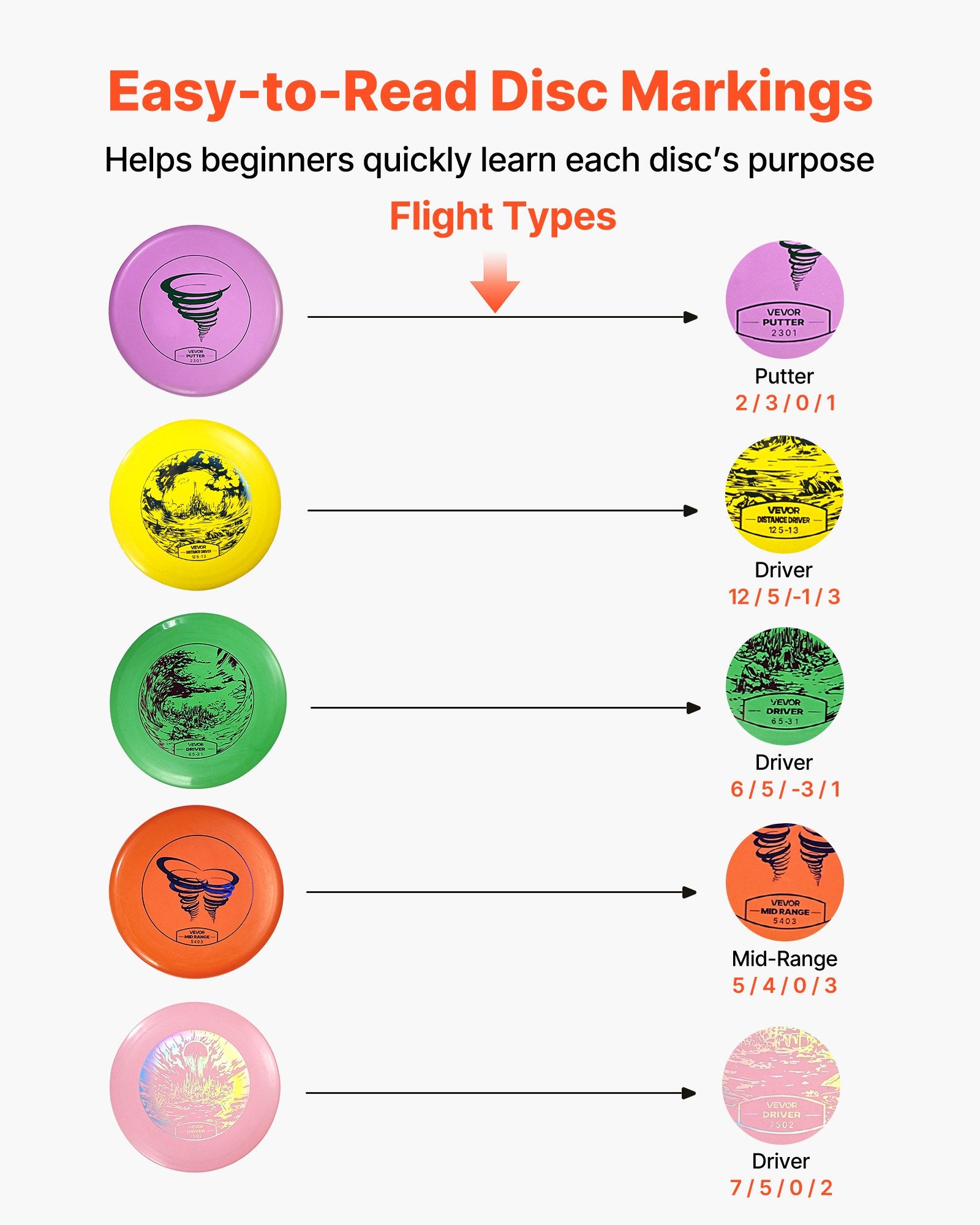 - Clear Graphics and Labels: Each disc features printed designs and text to help beginners quickly understand the basics of disc golf. Suitable for both new and experienced players who are looking to improve their skills