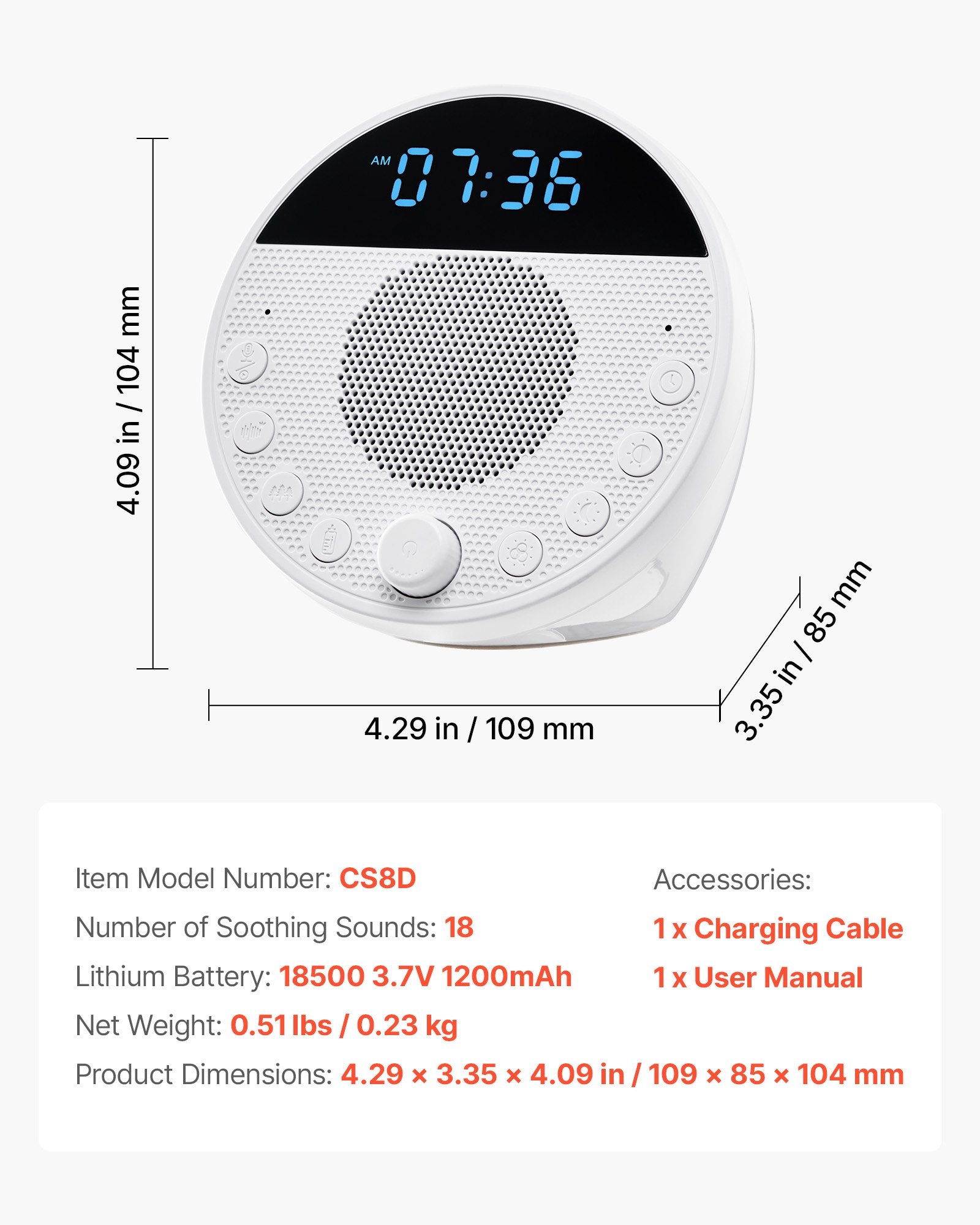 - 18 Soothing Sleep Music Tracks: This sound machine features 18 high-fidelity sound effects, including 6 white noise tracks, 6 lullabies, and 6 natural sound effects. It supports weekly playback without repetition, helping you fall asleep easily and providing a refreshed experience each week to meet your various needs