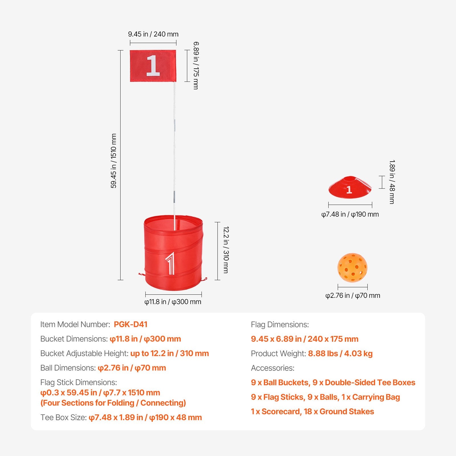 - VEVOR Golf Ball: The 2.76 in / 70.00 mm pickleball is larger and easier to hit, making the bucket golf game suitable for beginners and children.
