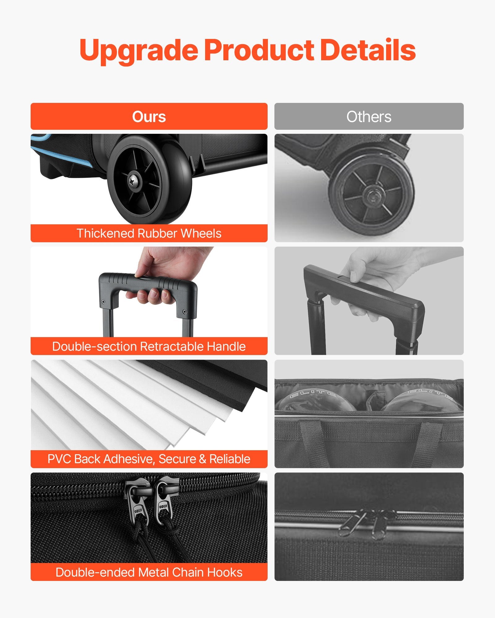 - Easy to Move & Carry: Featuring 3.5-inch-wide wheels and 360° swivel bearings, this bowling bag with wheels glides smoothly on any surface. The adjustable pull handle and hook-and-loop grip provide both carrying and rolling options