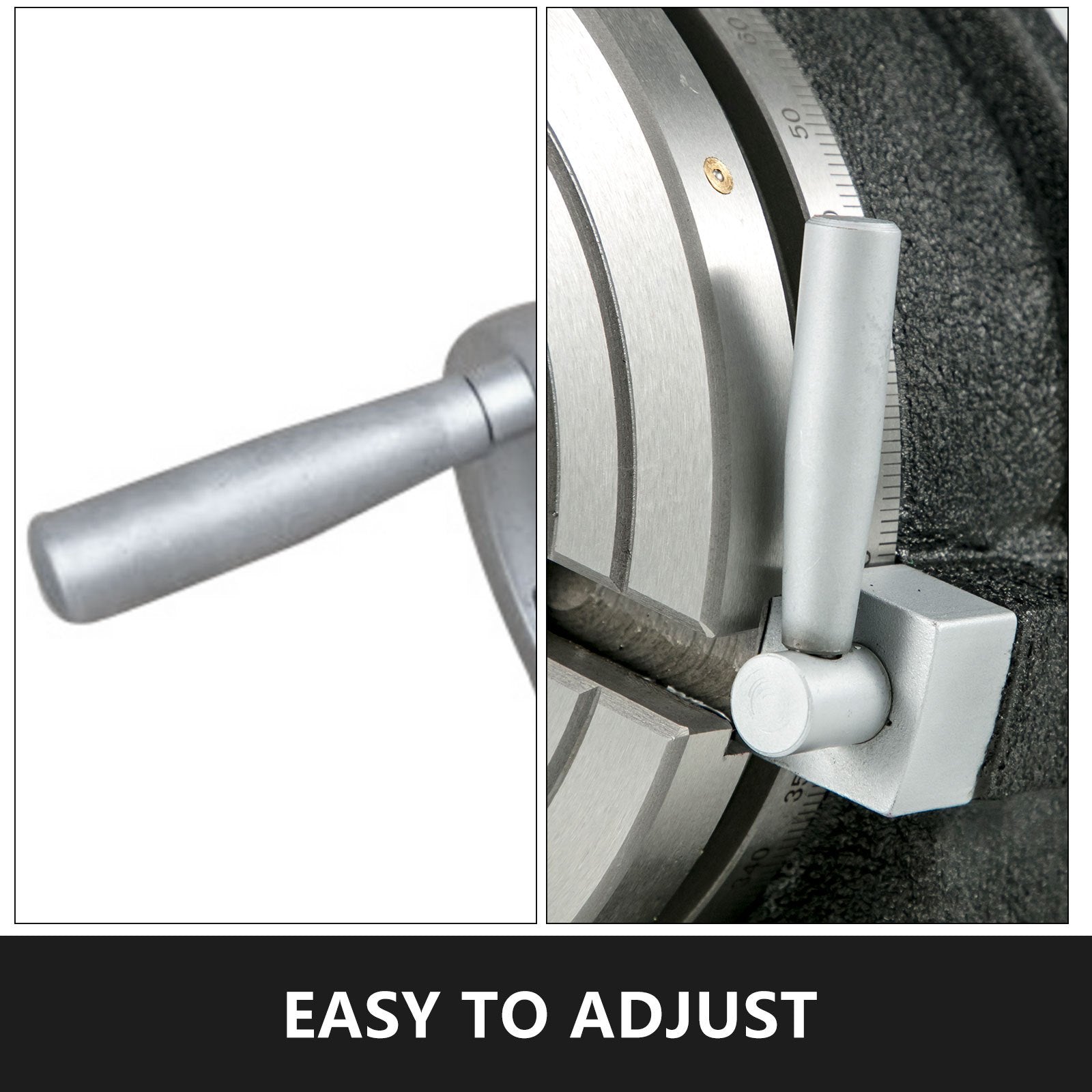 - Excellent Precision: The indexing plate can be graduated 360 Degrees. Resetting dial and hand wheel can be graduated in seconds. The minimum scale is calibrated to 10 seconds with high precision.