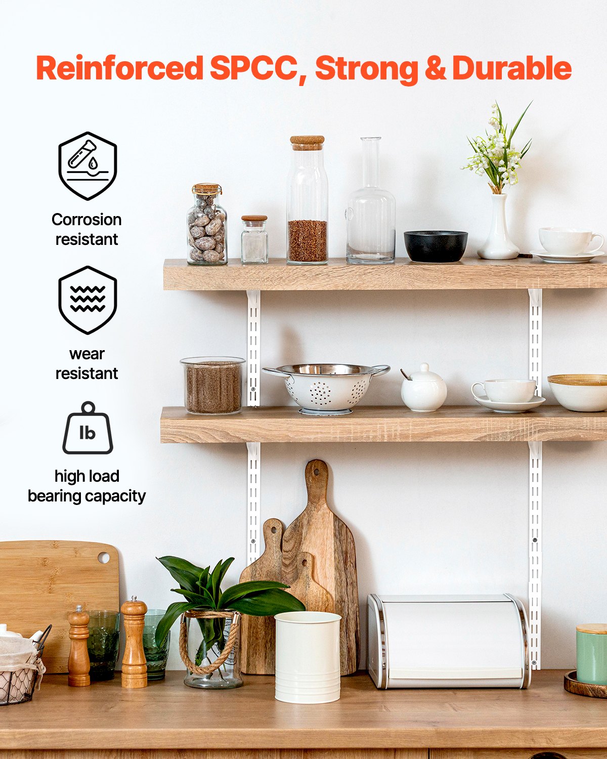- Built to Last: Our pilaster strips shelf rail is crafted with premium SPCC steel with a wear-resistant finish. It provides excellent load-bearing performance and resists scratches, rust, and deformation over time.